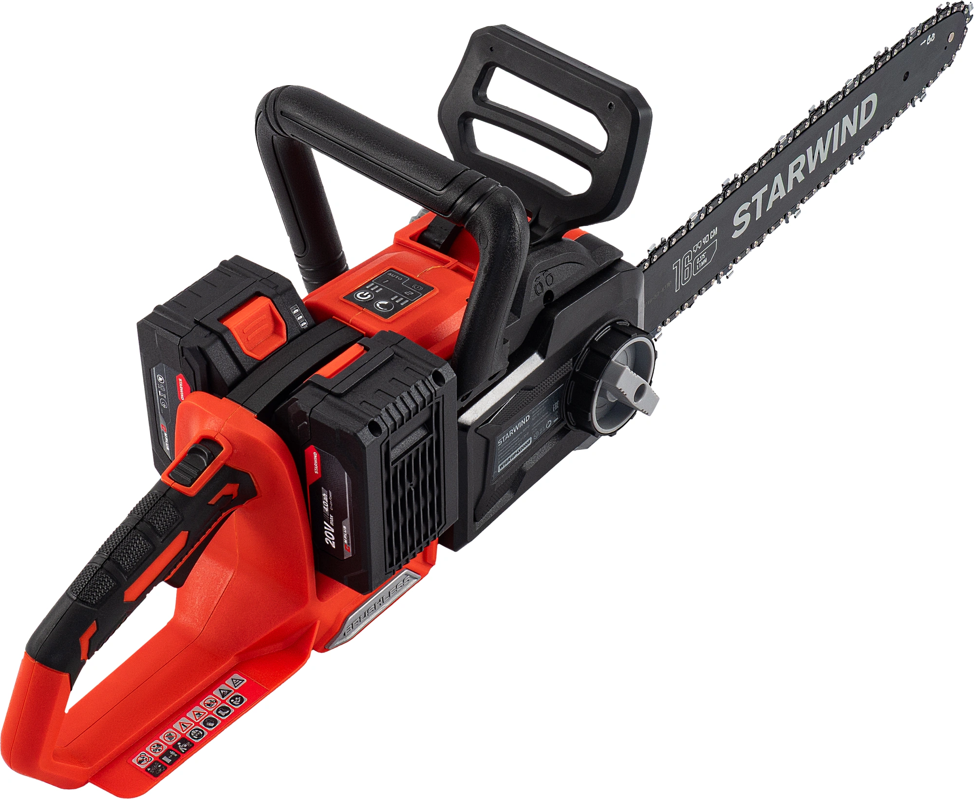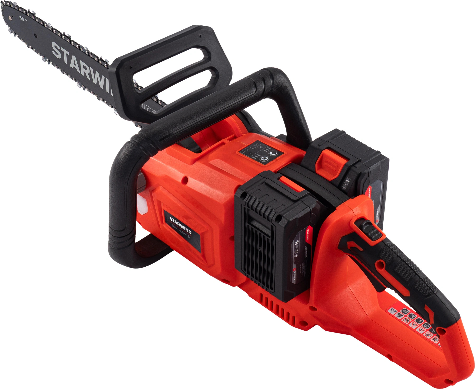 Пильная цепь, шина, 2 батареи 4Ач/10с, зарядное устройство на 2 батареи по 2.5А/порт