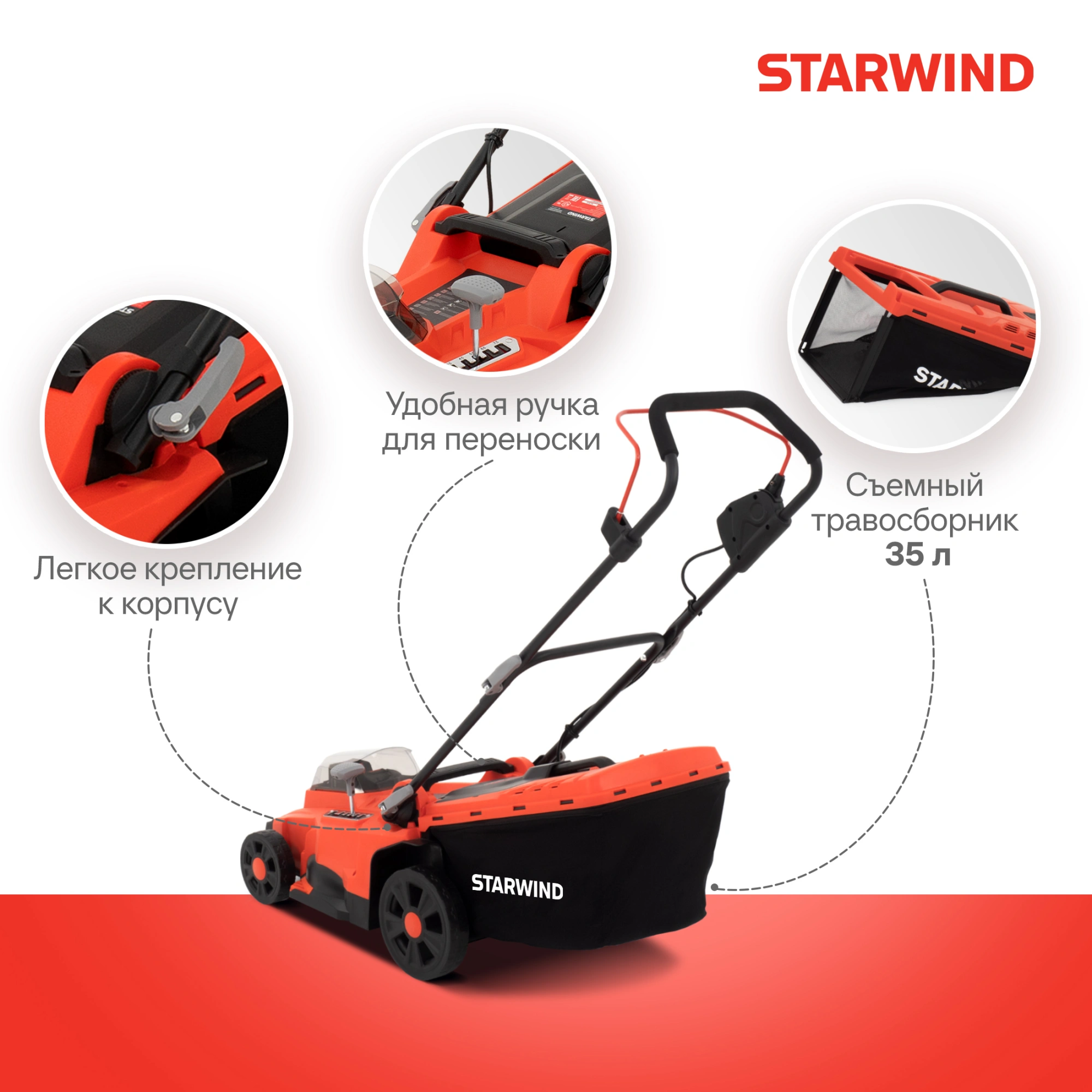 мульчирование, регулировка высоты скашивания, регулировка ручки по высоте, складная ручка