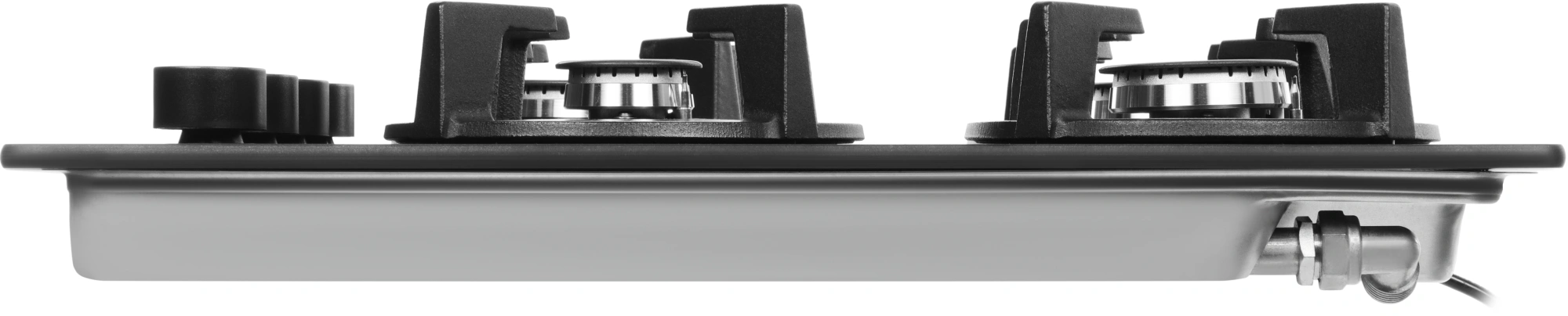 Панель оборудована 4 конфорками суммарной мощностью 7,3 кВт. Большая горелка 2,9 кВт обеспечивает быстрый нагрев и подходит для объемных блюд, малая мощностью 1 кВт удобна для приготовления соусов и разогрева. Две средние по 1,7 кВт дают универсальные возможности для повседневной готовки. Такое распределение мощности делает работу с панелью практичной. Решетки из чугуна обеспечивают устойчивое положение посуды и сохраняют форму при длительной эксплуатации.