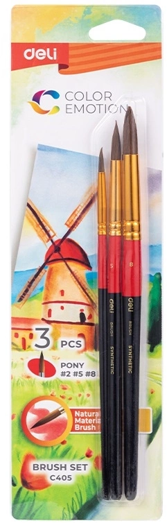 Набор кистей Deli EC405 пони круг. (наб.3шт) пони круг.№2,5,8