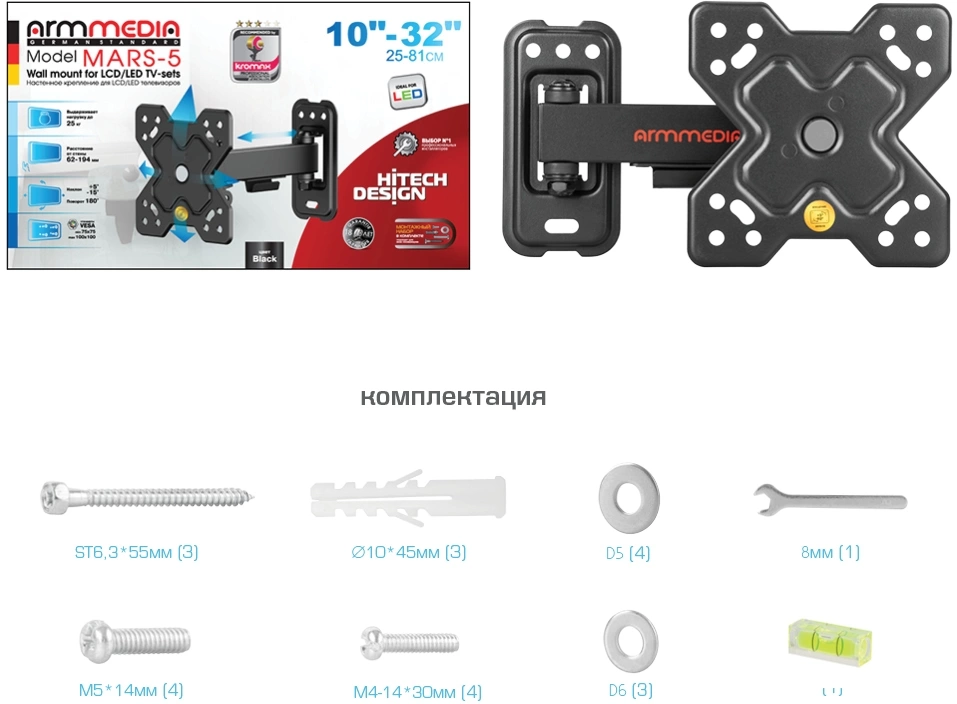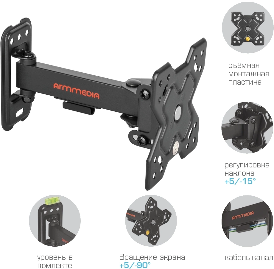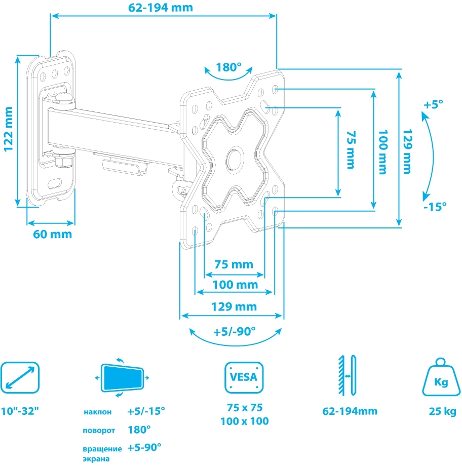 черный 10"-32" макс.25кг настенный поворот и накло...