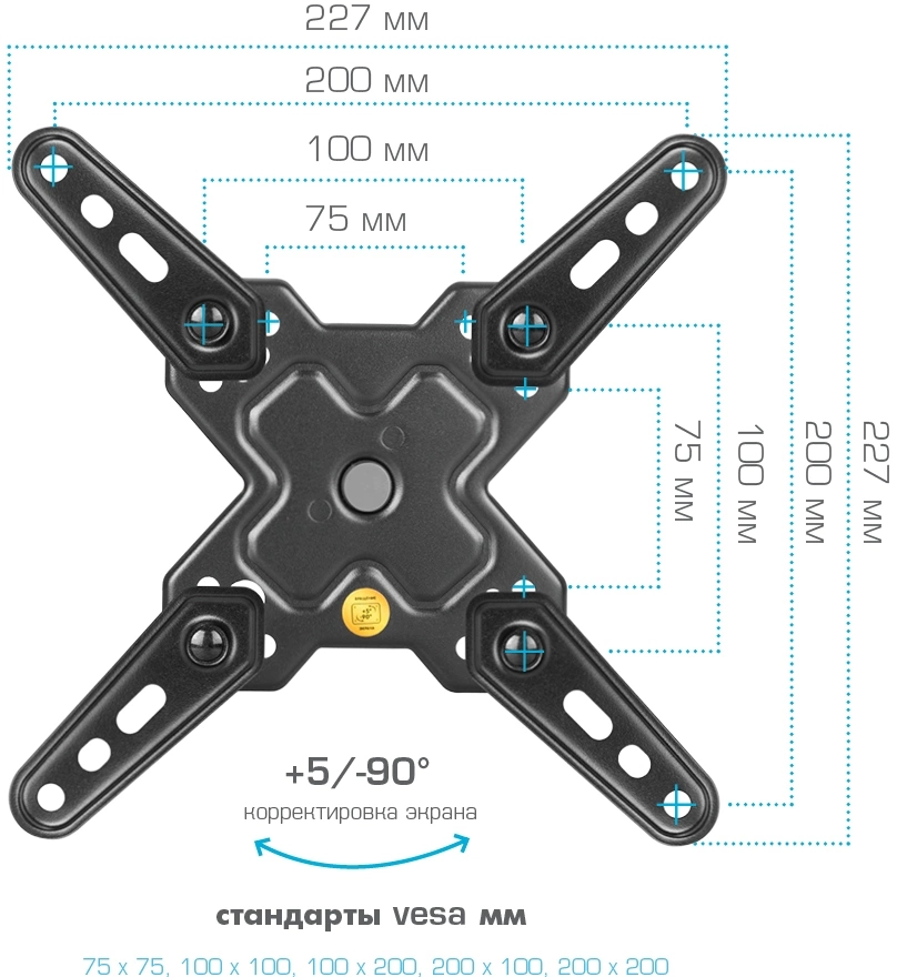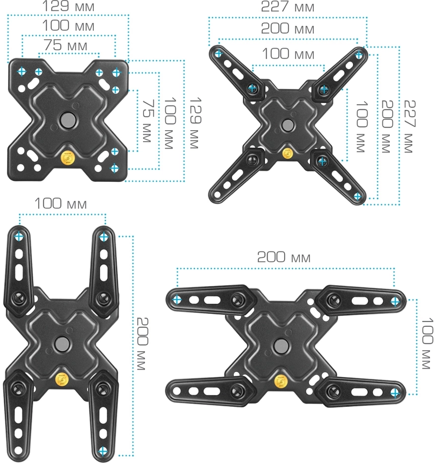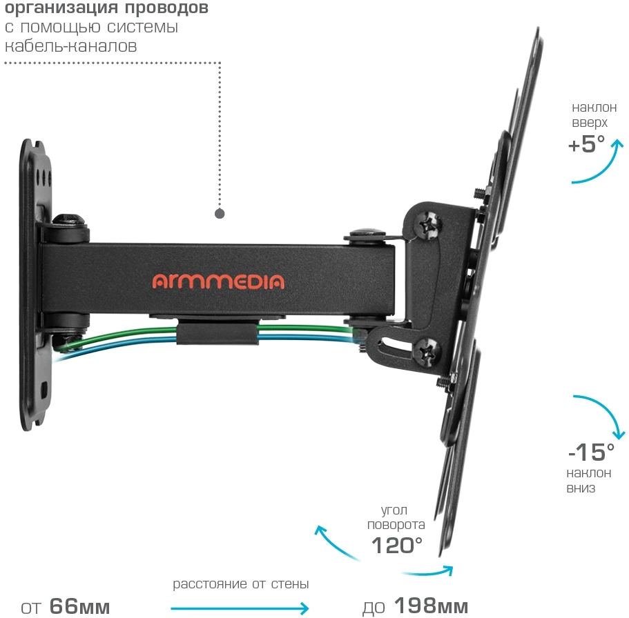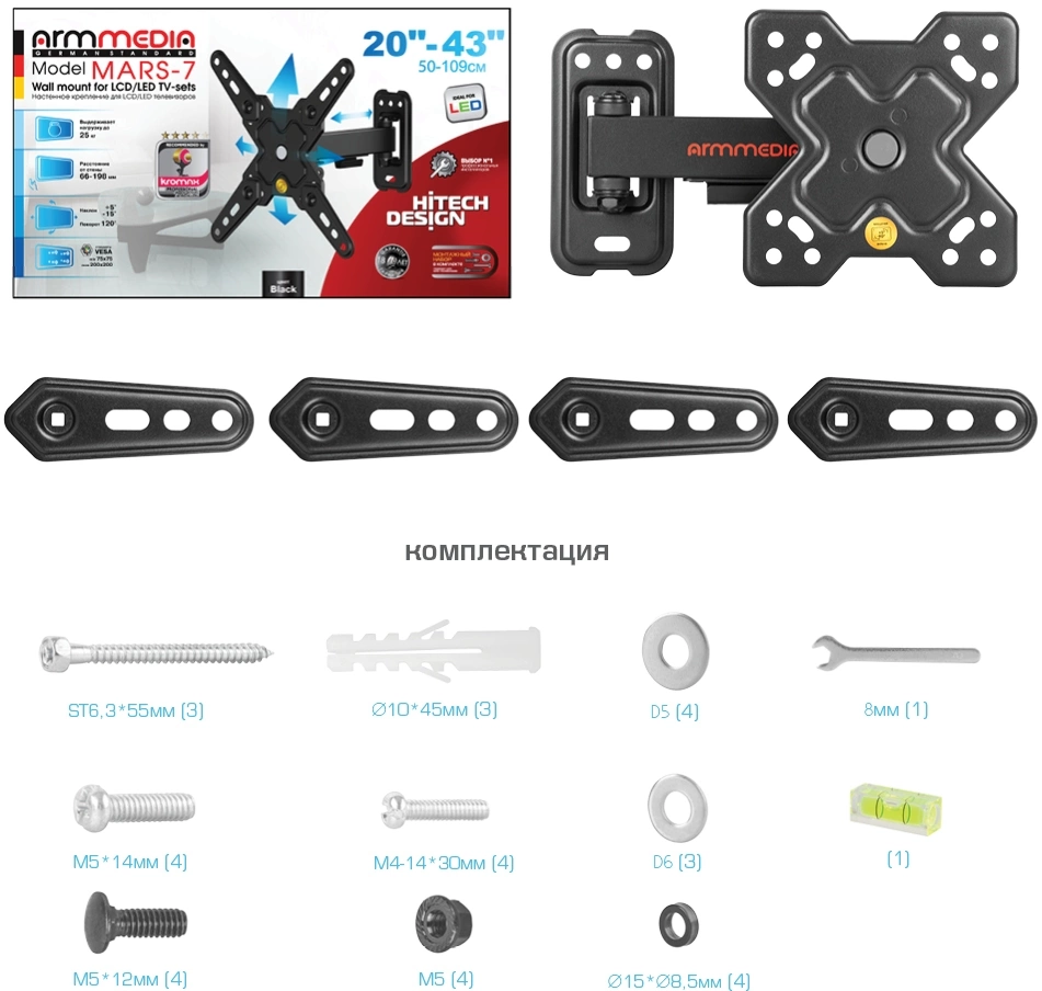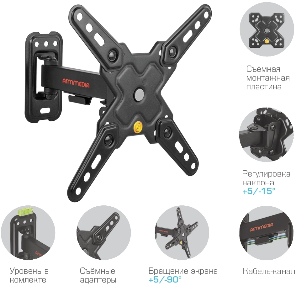 черный 20"-43" макс.25кг настенный поворотно-выдви...