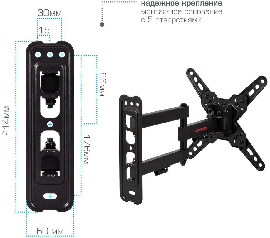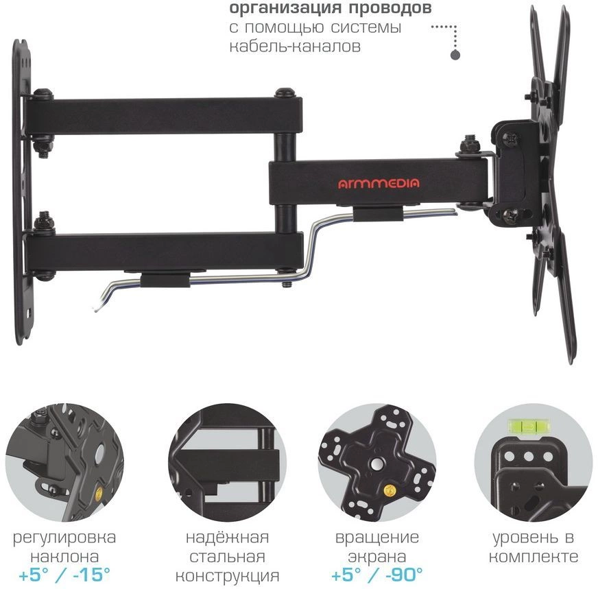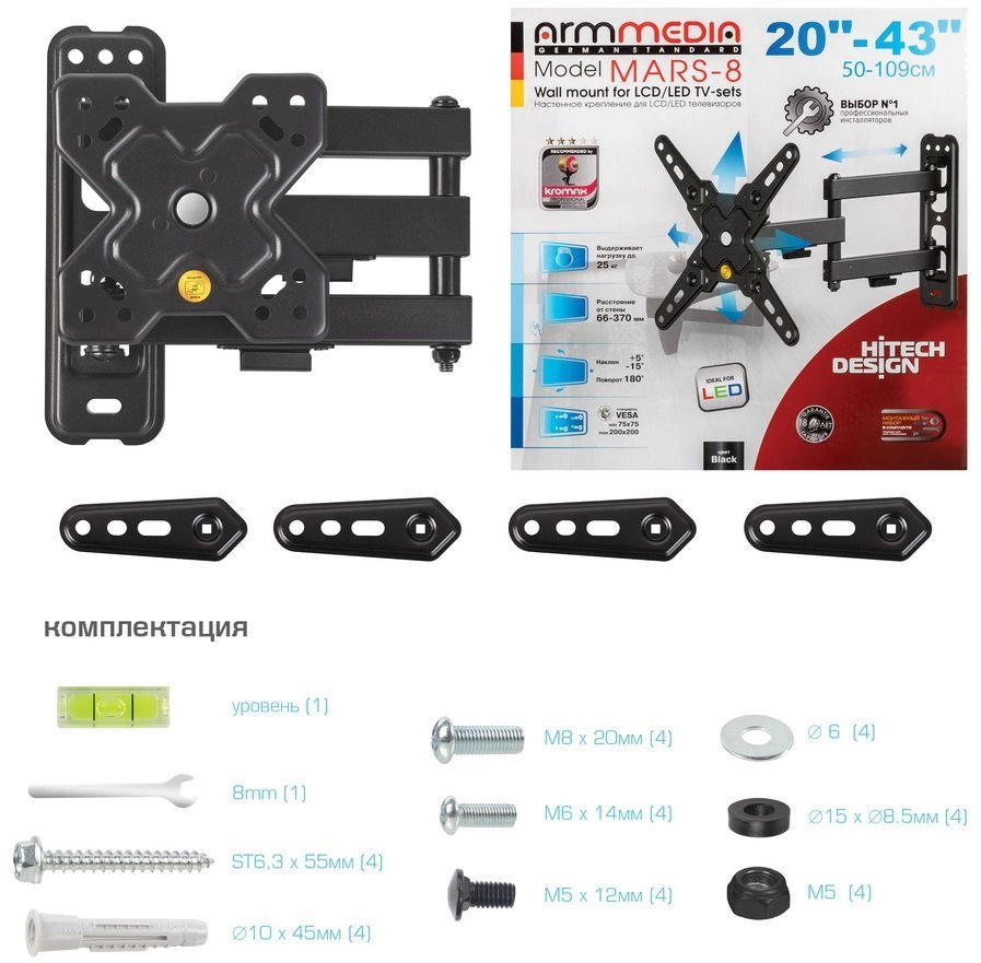 черный 20"-43" макс.25кг настенный поворотно-выдви...