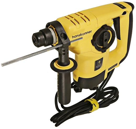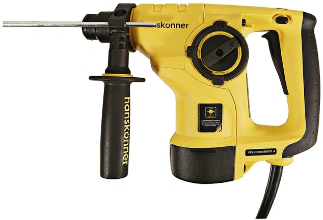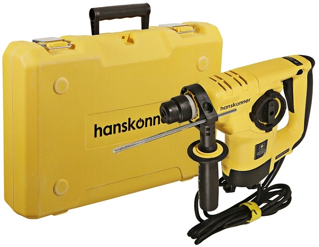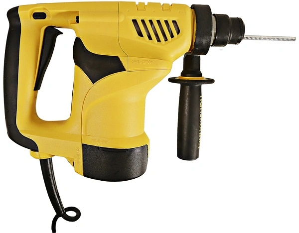 Перфоратор, дополнительная рукоять, глубиномер, угольные щётки - 1 комплект, смазка для хвостовиков буров, SDS+ сверла - 3 шт., кейс.