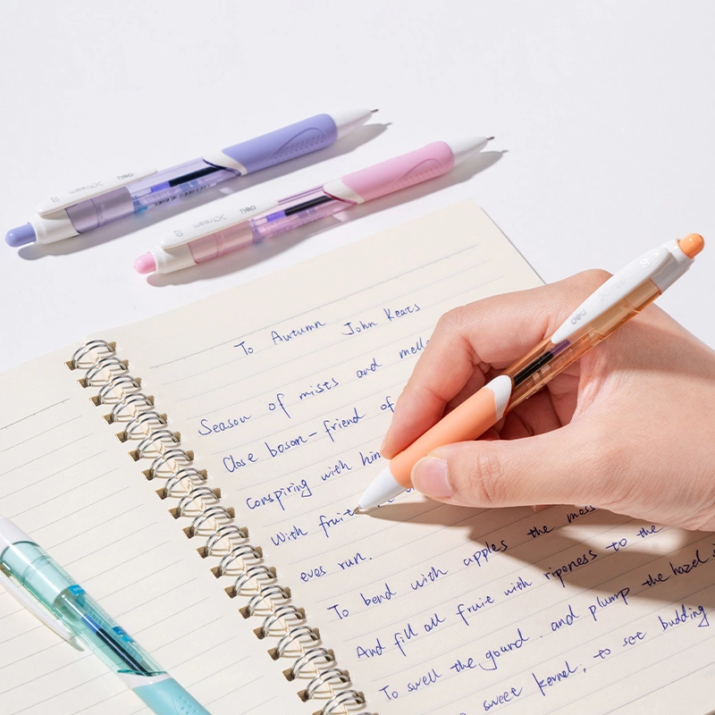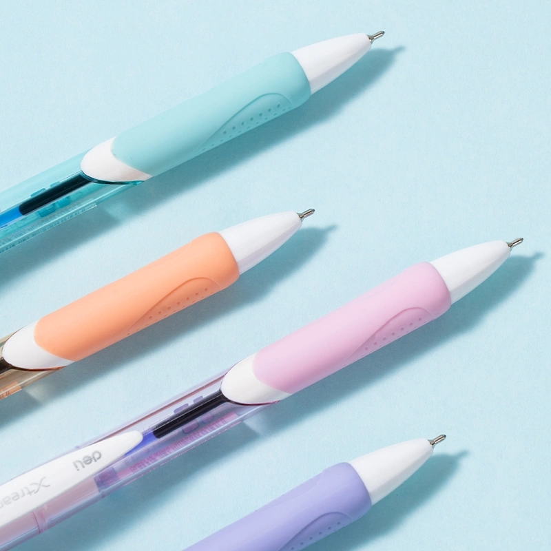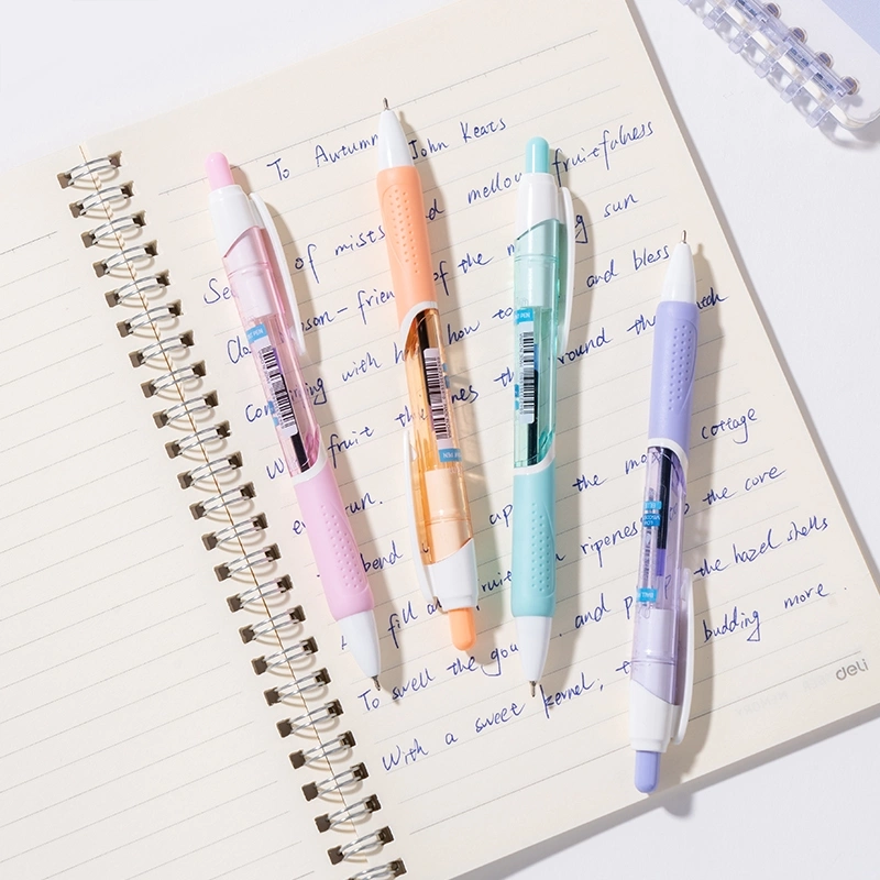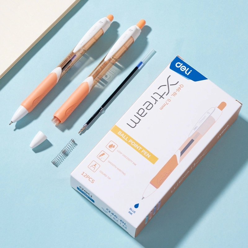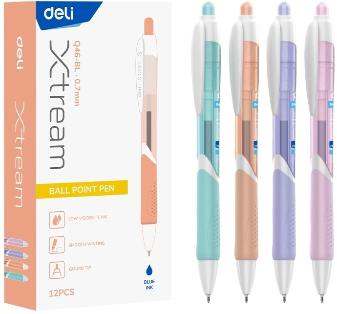 Ручка шариков. автоматическая Deli (EQ46) ассорти d=0.7мм син. черн. кор.карт. игловидный пиш. наконечник резин. манжета