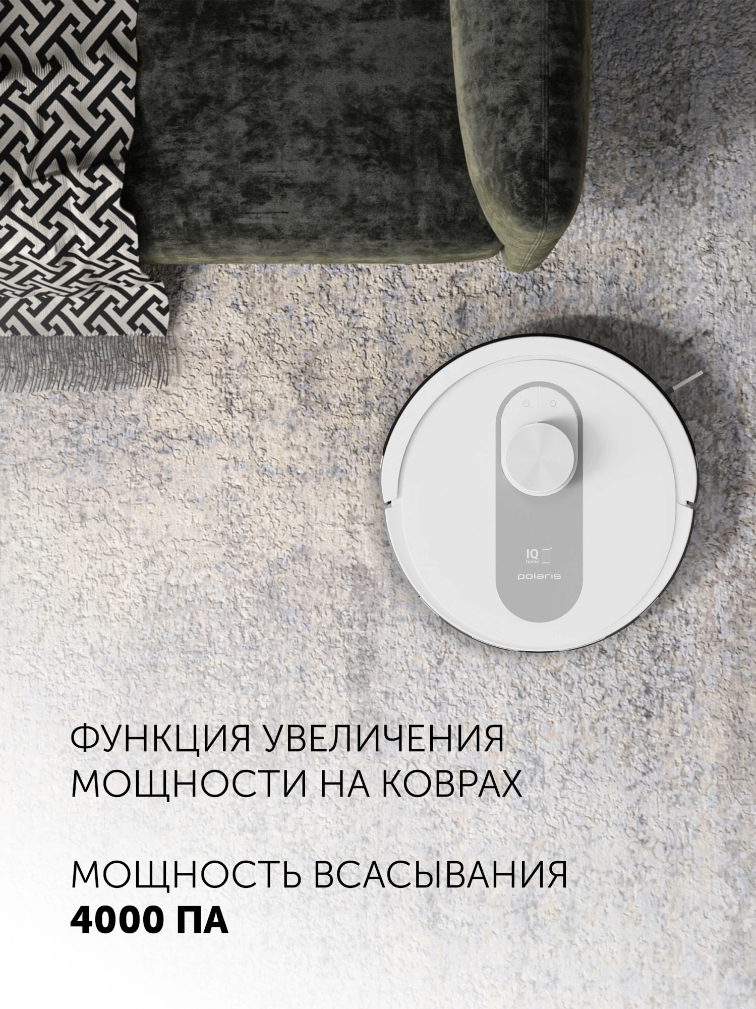 Амортизирующие колеса. Влажная уборка. Электрощетка. HEPA фильтр. Полностью автоматическая уборка. Автоматическое возвращение на базу. Инфракрасные датчики. Боковые щетки. Сенсорные датчики. Виртуальная стена. База/Зарядная станция. Построение карты помещения. Голосовые оповещения.