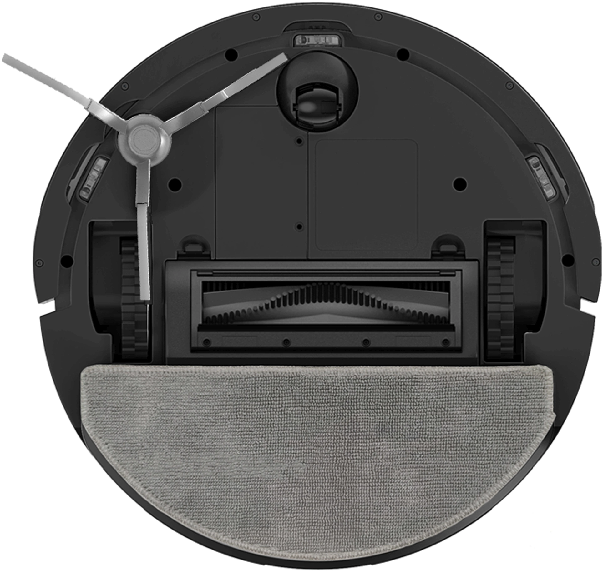 боковые щетки, датчик обнаружения препятствий, датчик перепада высоты, мягкий бампер