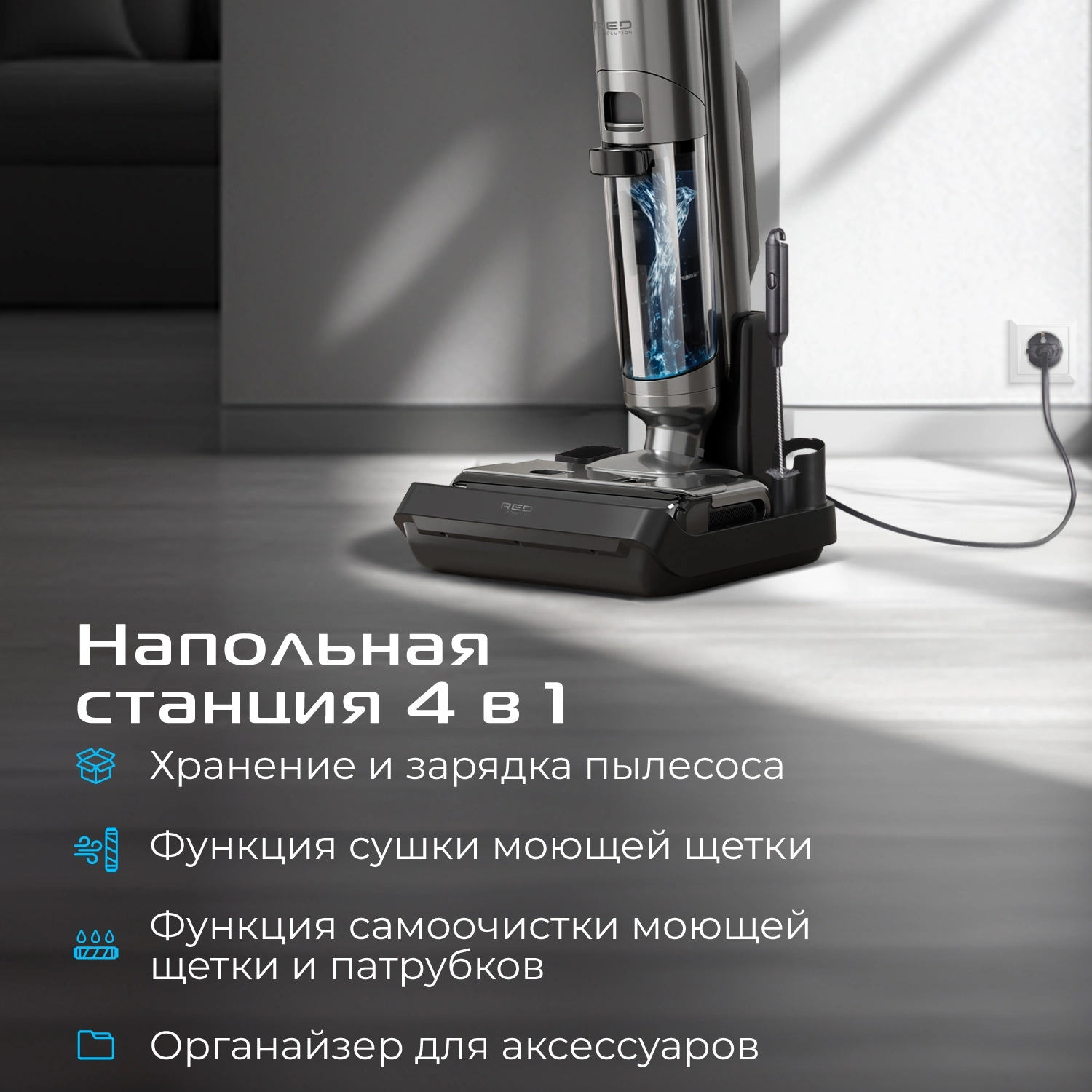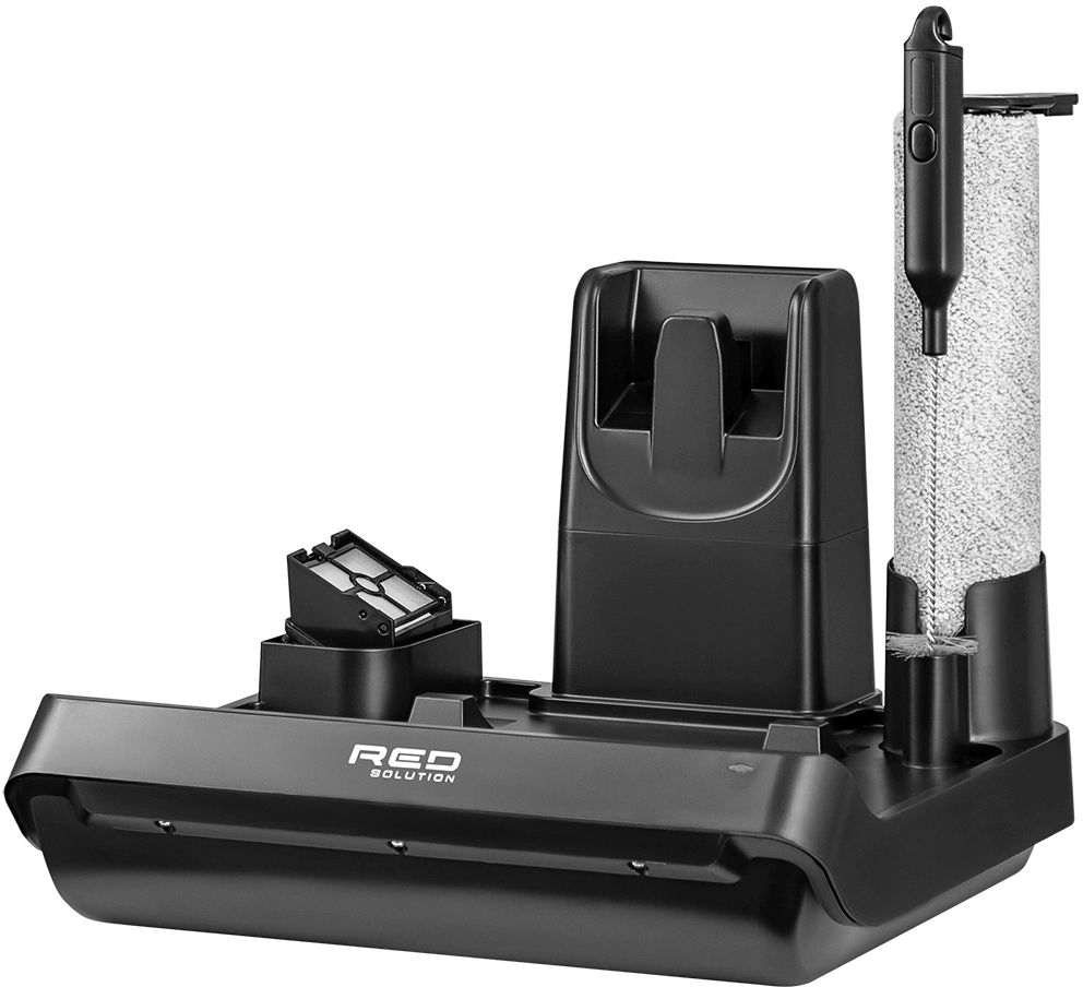 Зарядная станция с функцией сушки, дополнительный валик для турбощетки, дополнительный HEPA-фильтр, щёточка для очистки, моющие пластинки (100 шт.)