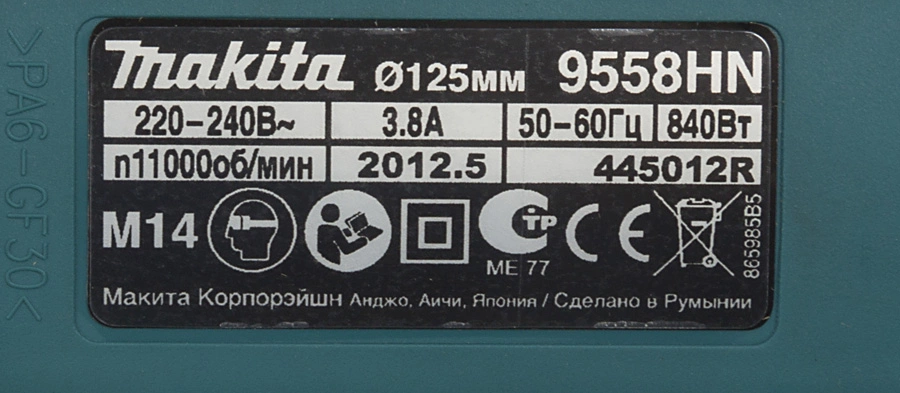 840Вт 11000об/мин рез.шпин.:M14 d=125мм