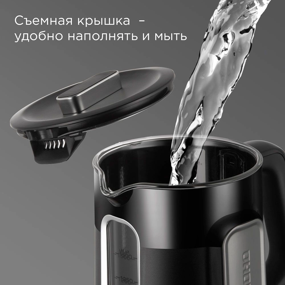 1.5л. 1780Вт черный корпус: стекло/металл/пластик