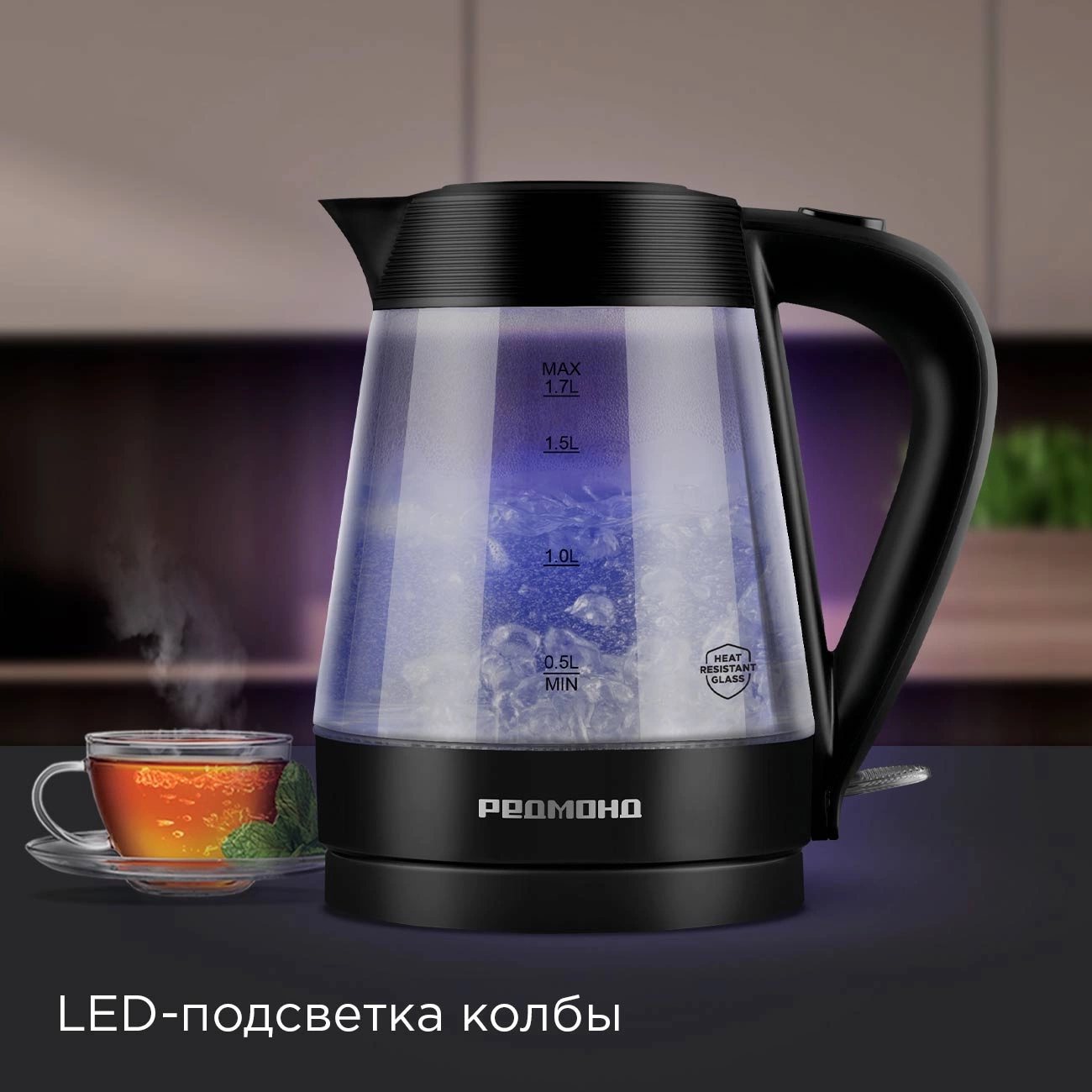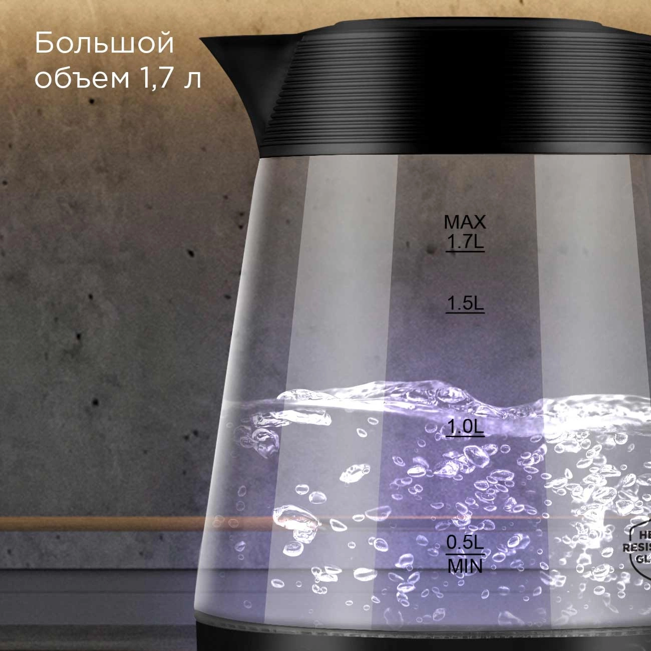 1.7л. 2200Вт черный корпус: пластик/стекло