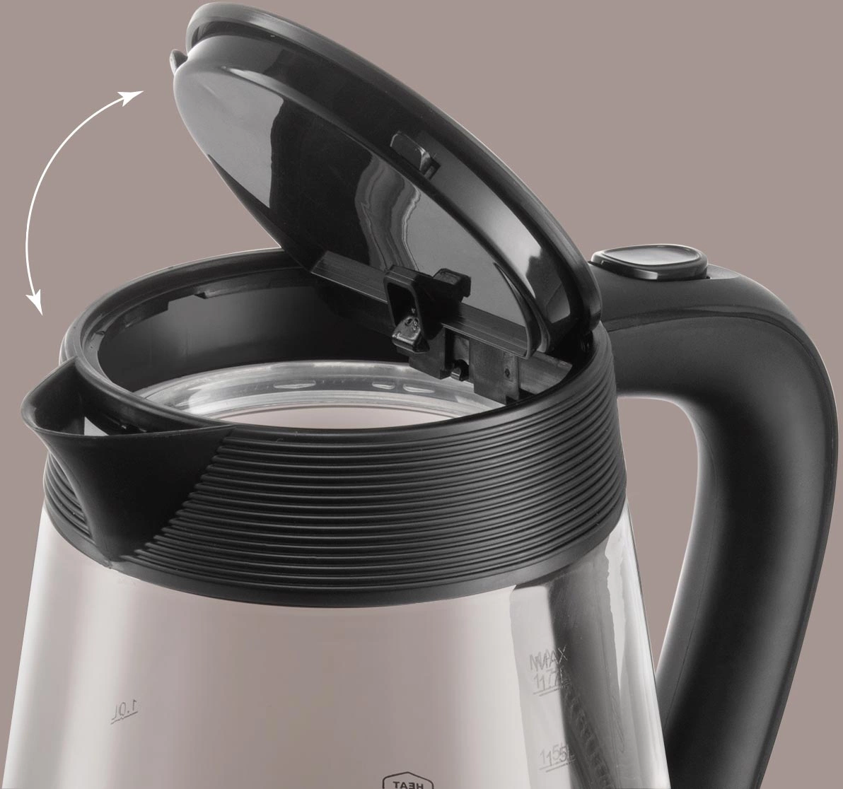 кнопка открытия крышки, подсветка воды, подставка 360, фильтр от накипи