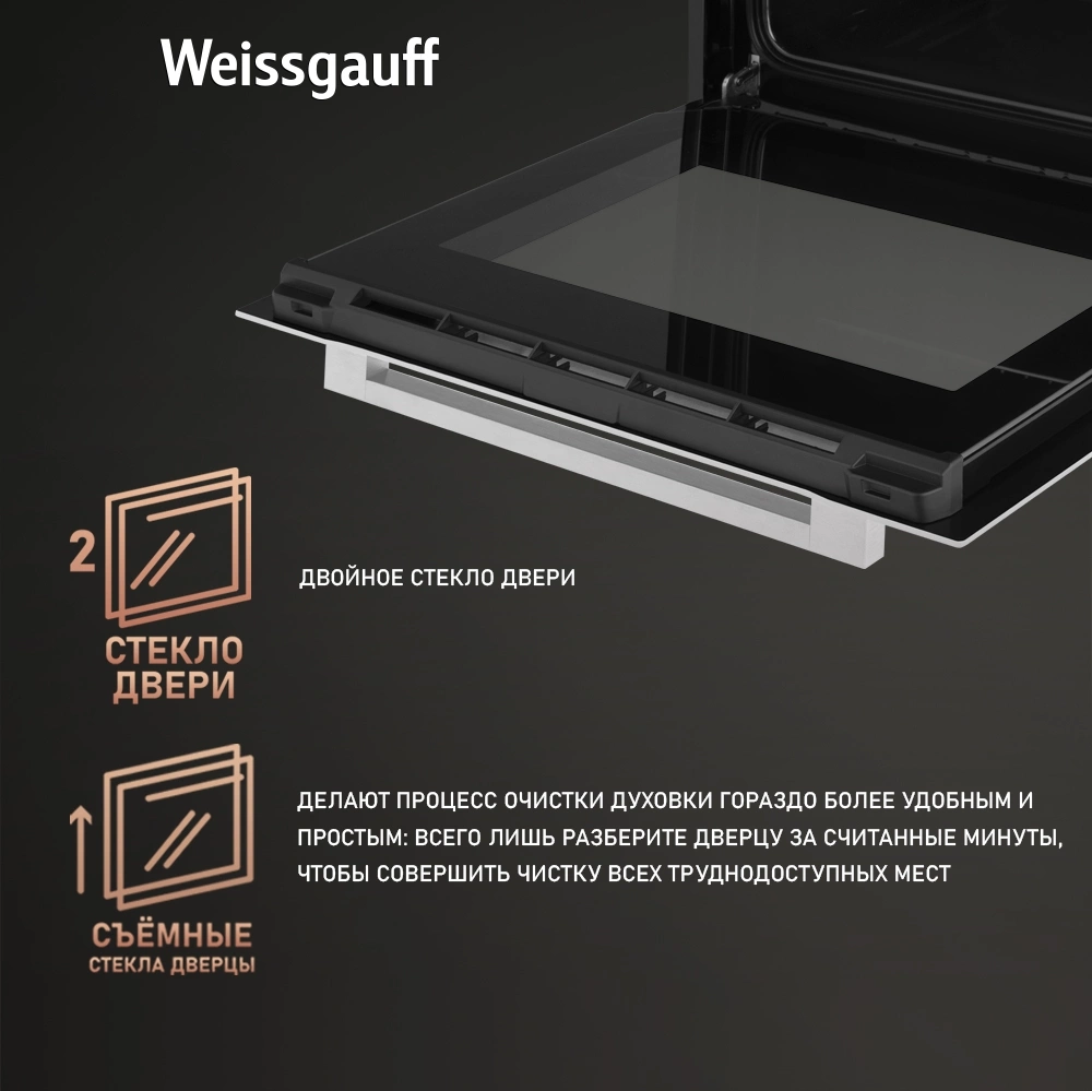 полностью стеклянная внутренняя поверхность дверцы духовки, утапливаемые переключатели