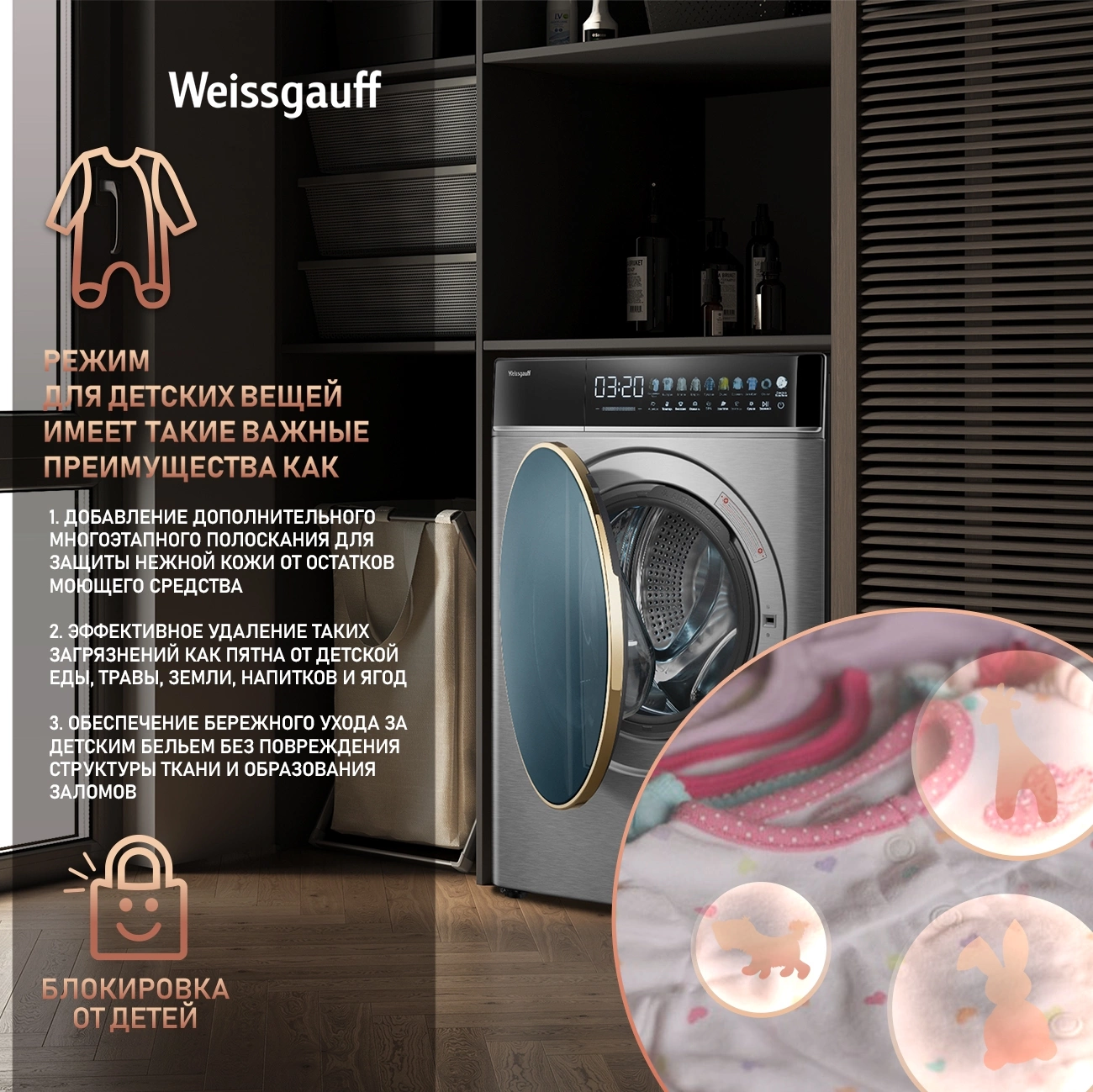 автоматический дозатор средств, дозагрузка белья, регулируемая температура