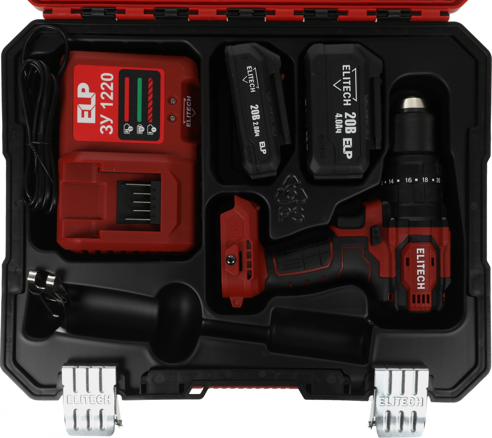 Аккумуляторная дрель, аккумулятор 2 Ач, аккумулятор 4 Ач, зарядное устройство, кейс, паспорт.