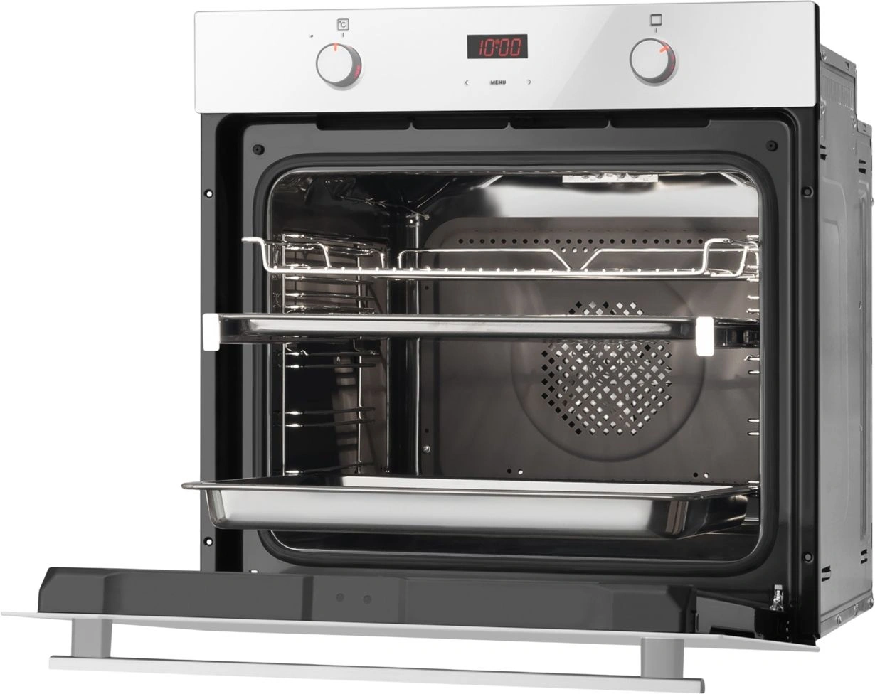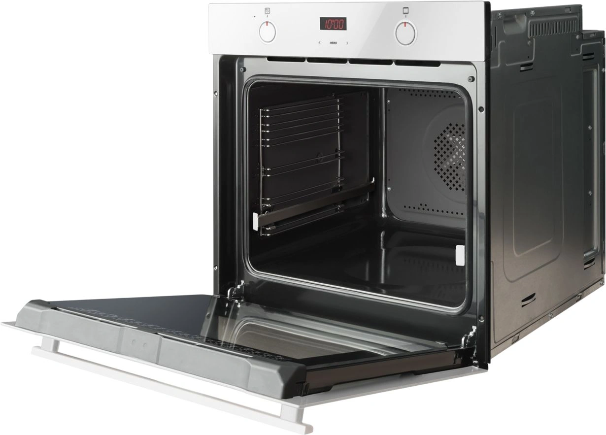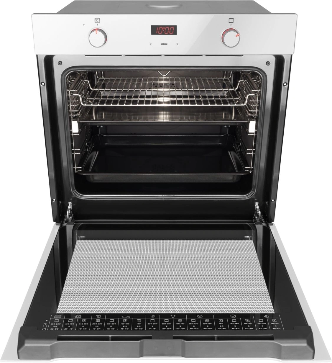 дисплей, полностью стеклянная внутренняя поверхность дверцы духовки, телескопические направляющие, утапливаемые переключатели