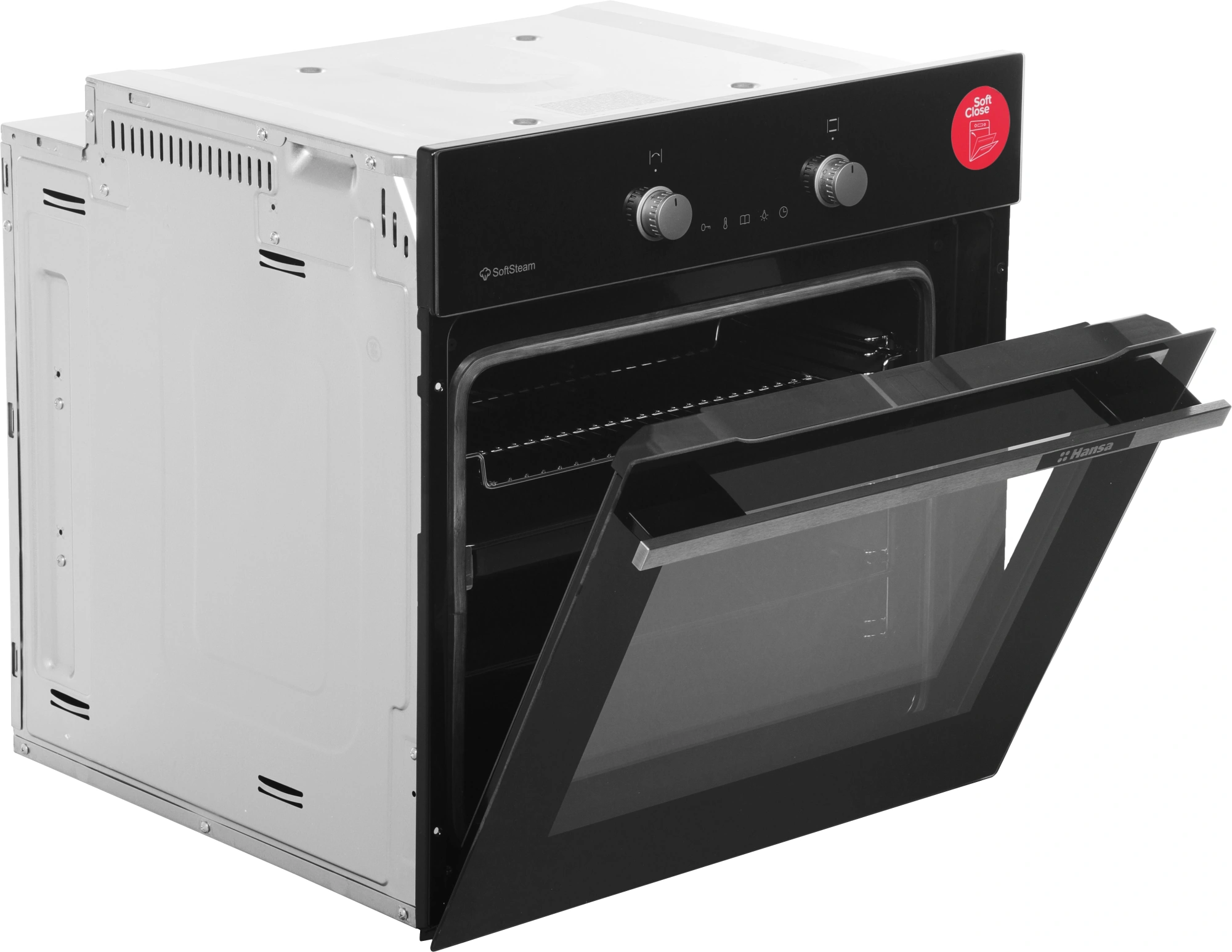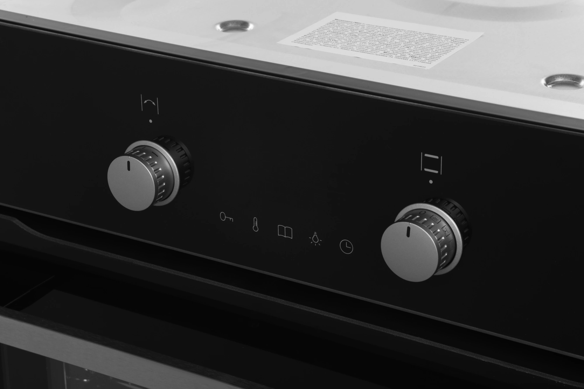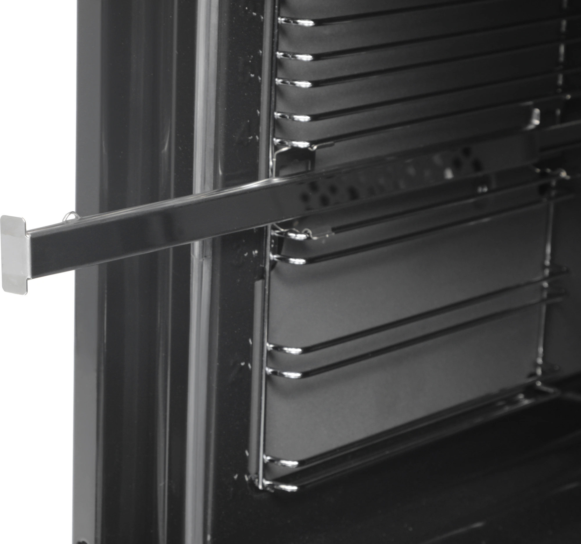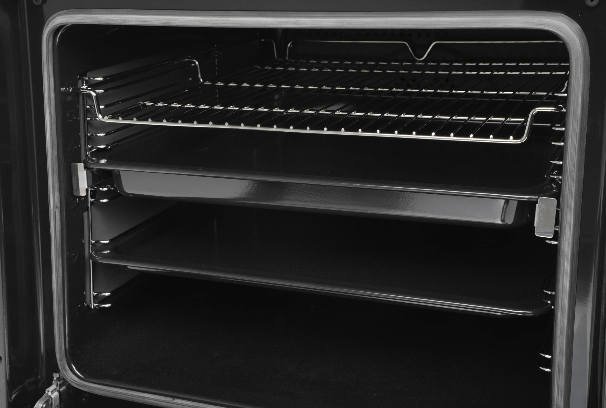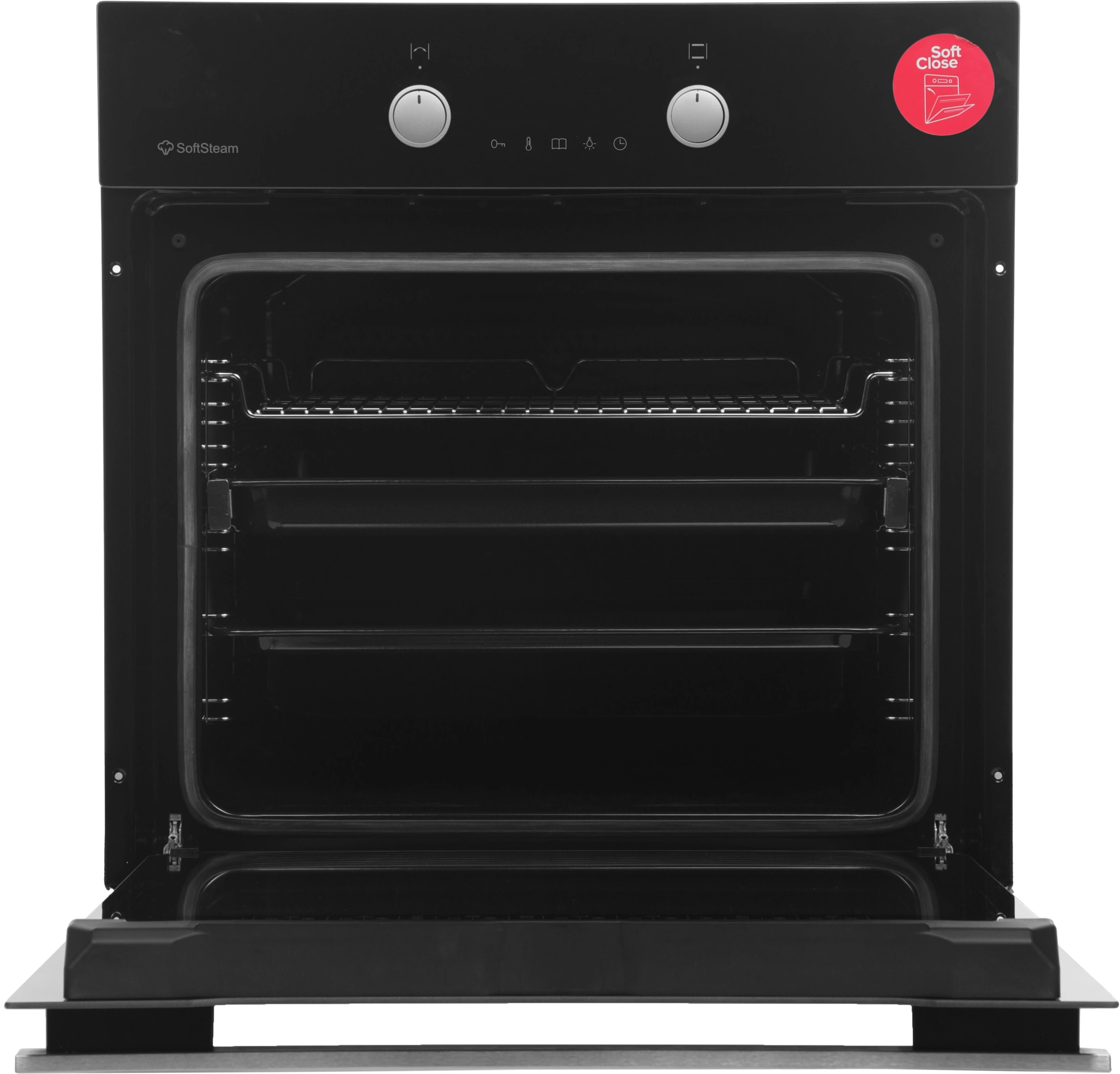 дисплей, доводчик двери, полностью стеклянная внутренняя поверхность дверцы духовки, телескопические направляющие, утапливаемые переключатели
