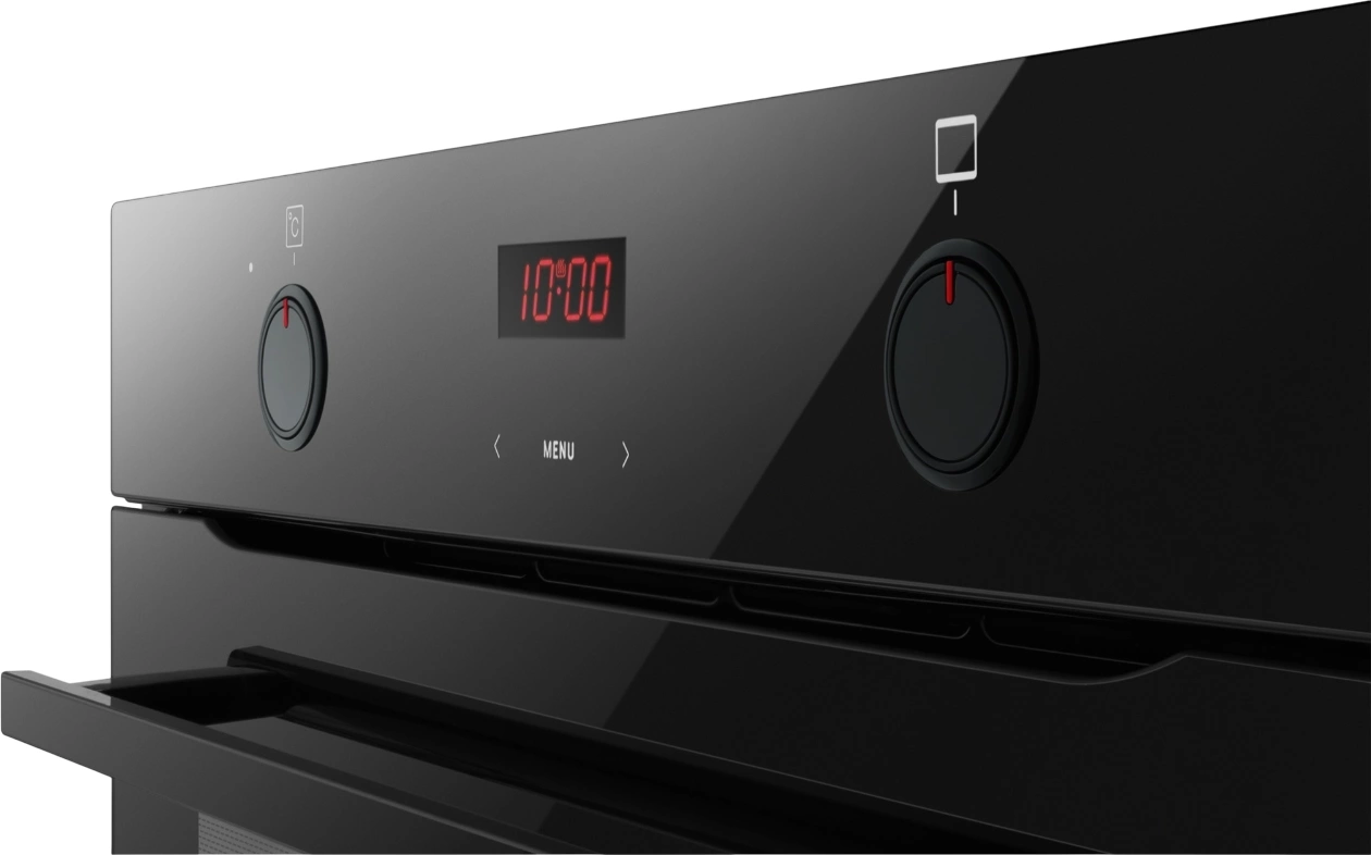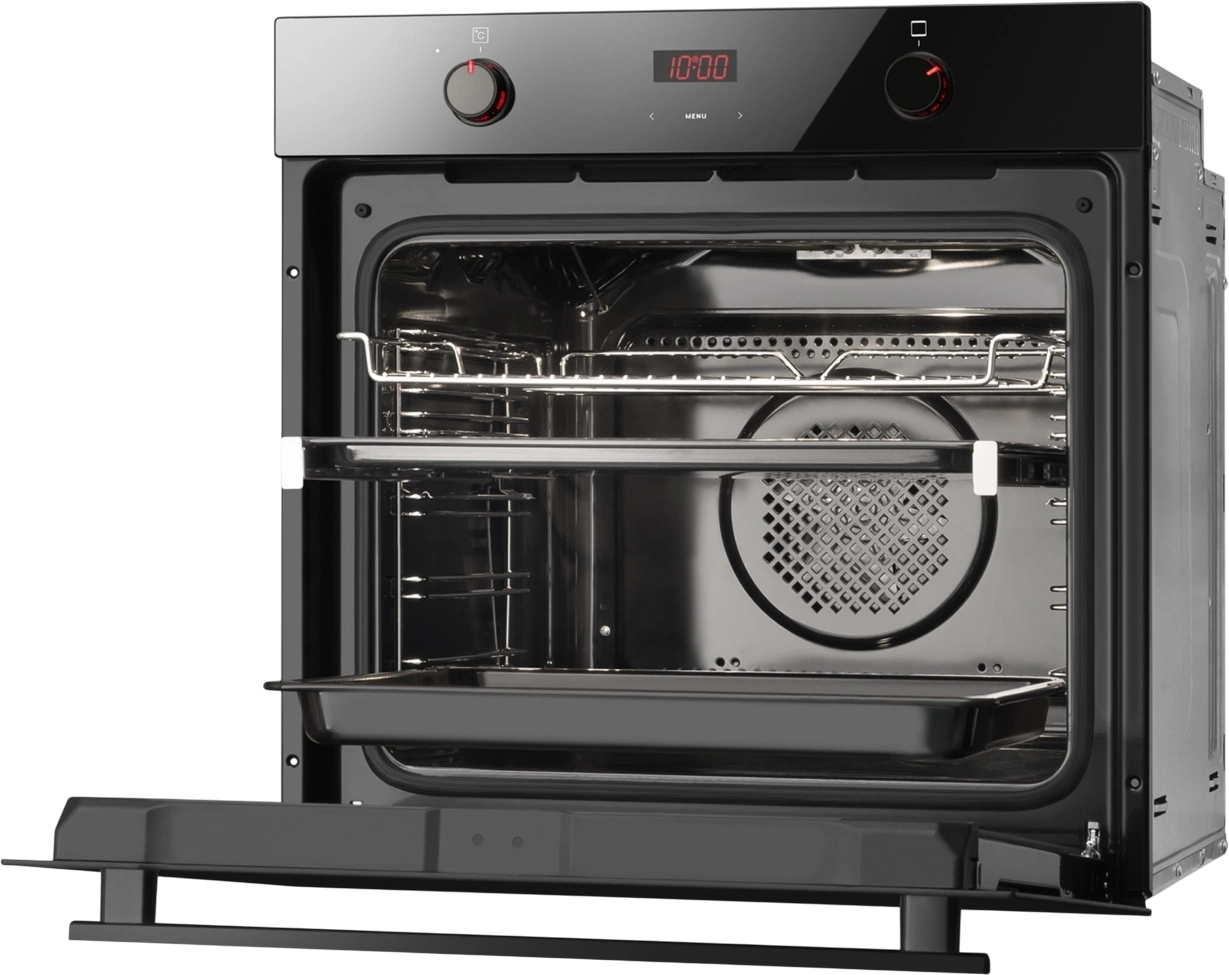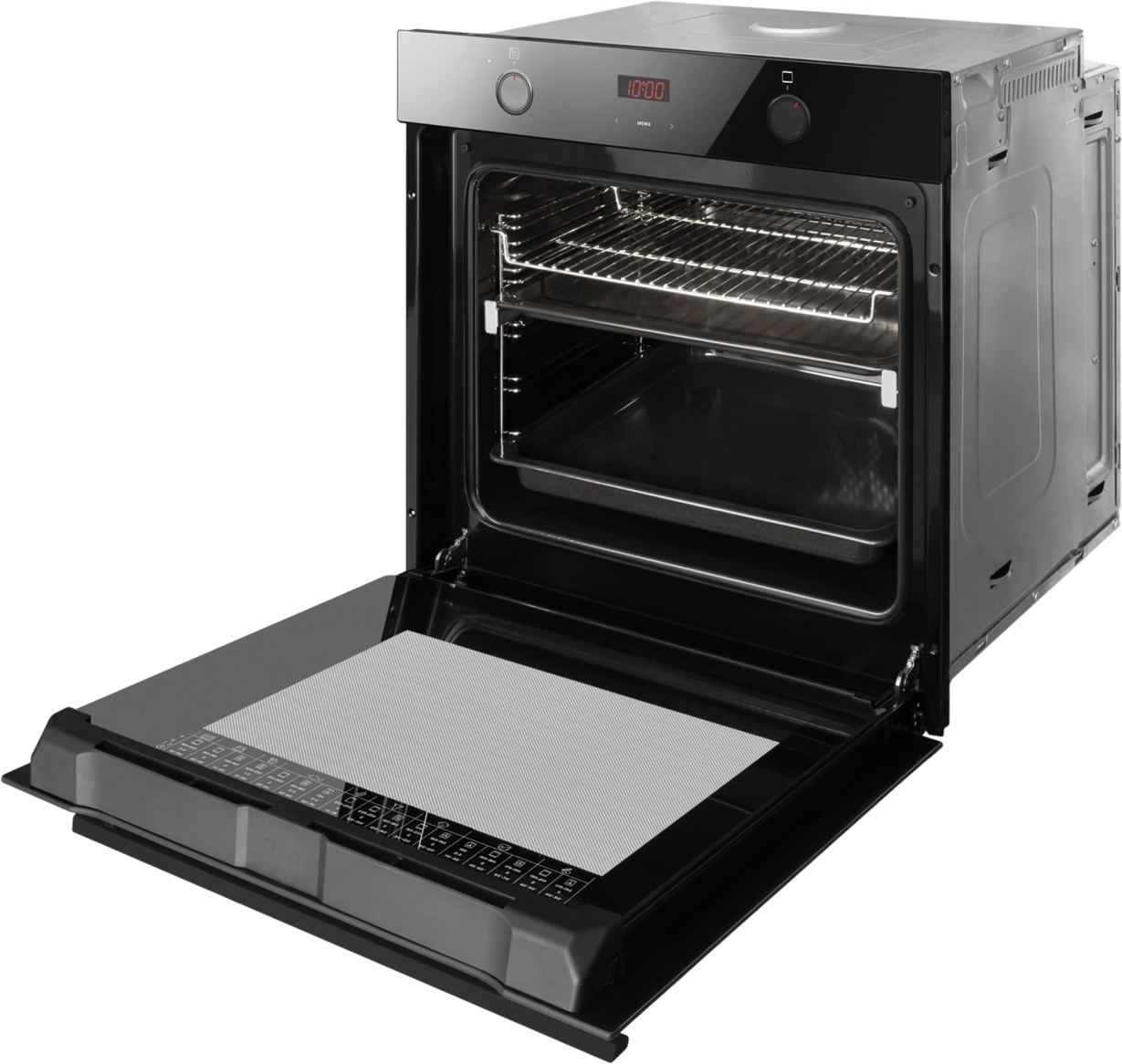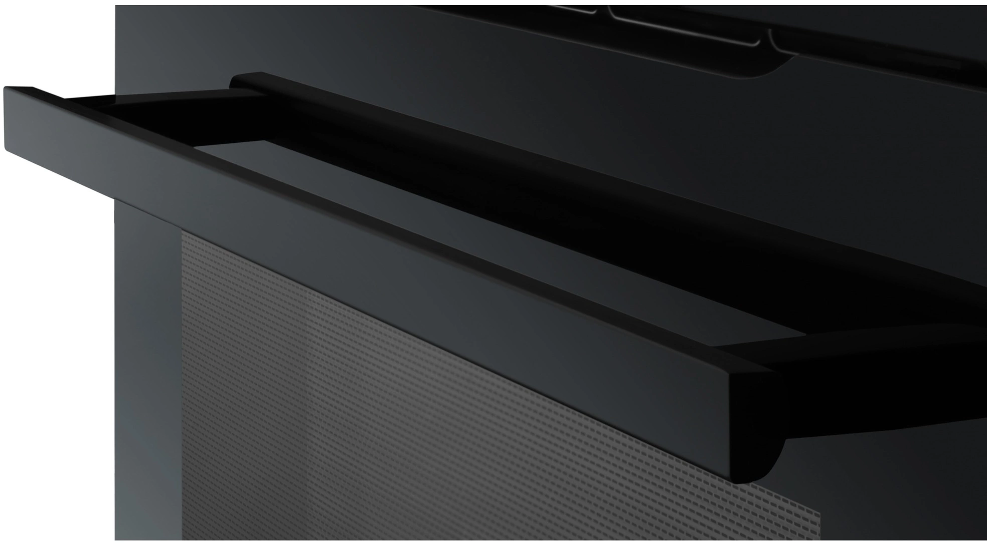 дисплей, полностью стеклянная внутренняя поверхность дверцы духовки, телескопические направляющие, утапливаемые переключатели