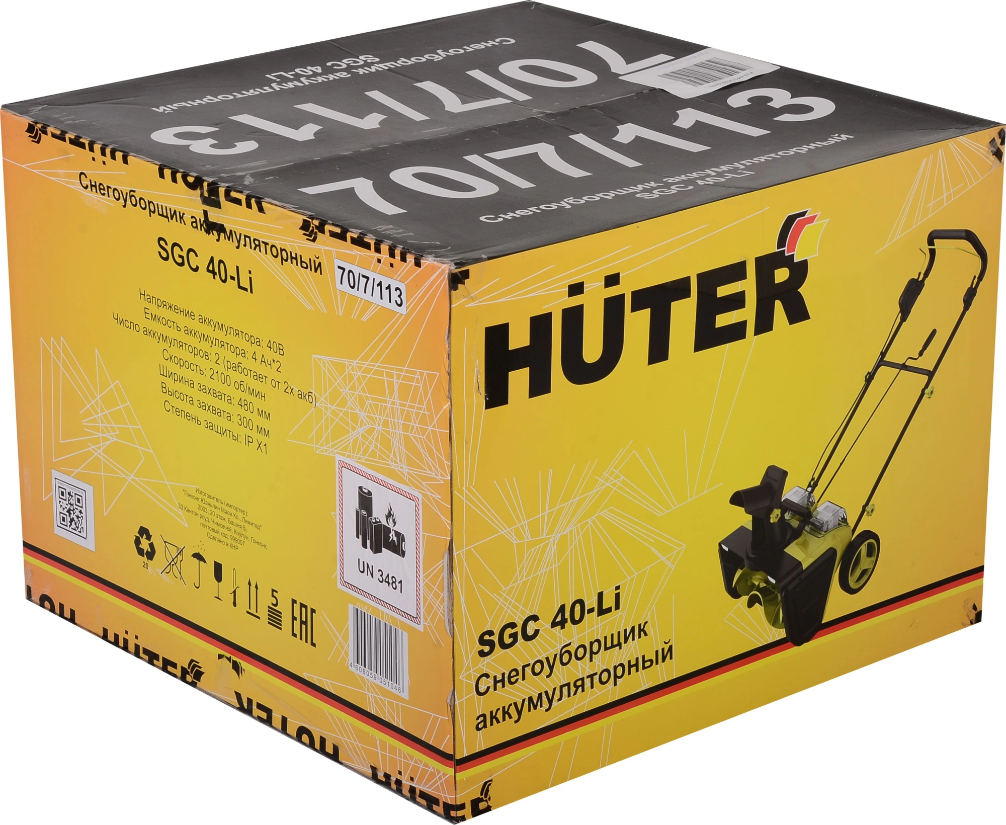 Снегоуборщик аккумуляторный Huter SGC 40-Li предназначен для очистки снега с ровных и твердых поверхностей.