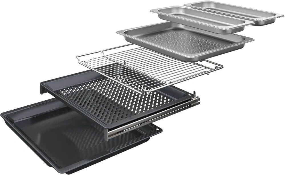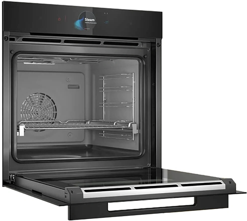дисплей, полностью стеклянная внутренняя поверхность дверцы духовки, телескопические направляющие