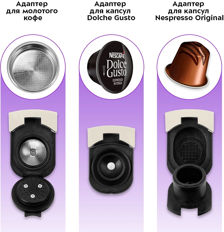 капучинатор, съемный поддон для капель, съемный резервуар для воды, темпер