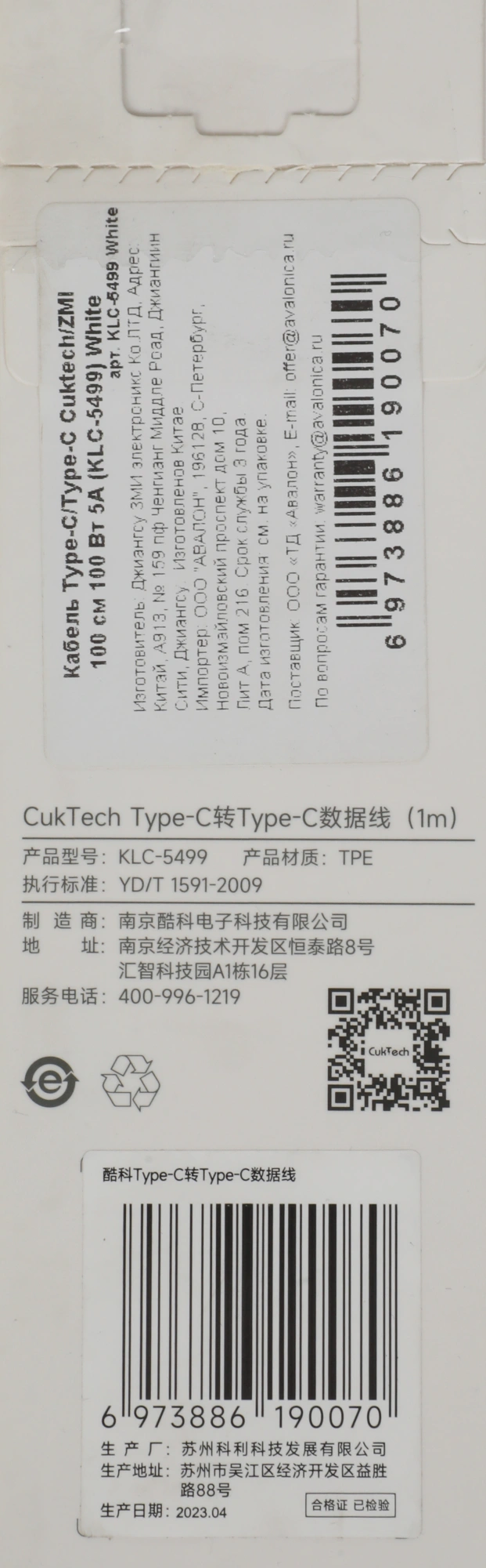 USB Type-C (m)-USB Type-C (m) 1м белый коробка