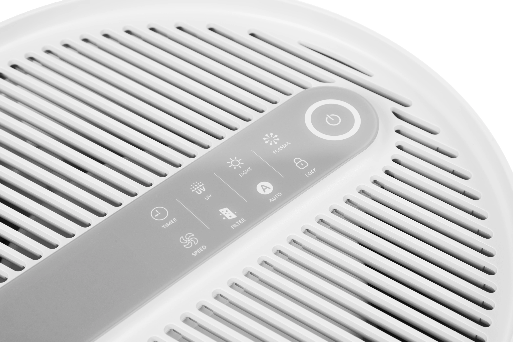 Сенсорная панель управления, Встроенная система анализа окружающего воздуха, Интеллектуальный автоматический режим работы, ифровое отображения уровня вредных техногенных частиц PM2.5; PM1; PM10 в воздухе, Мягкая подсветка прибора