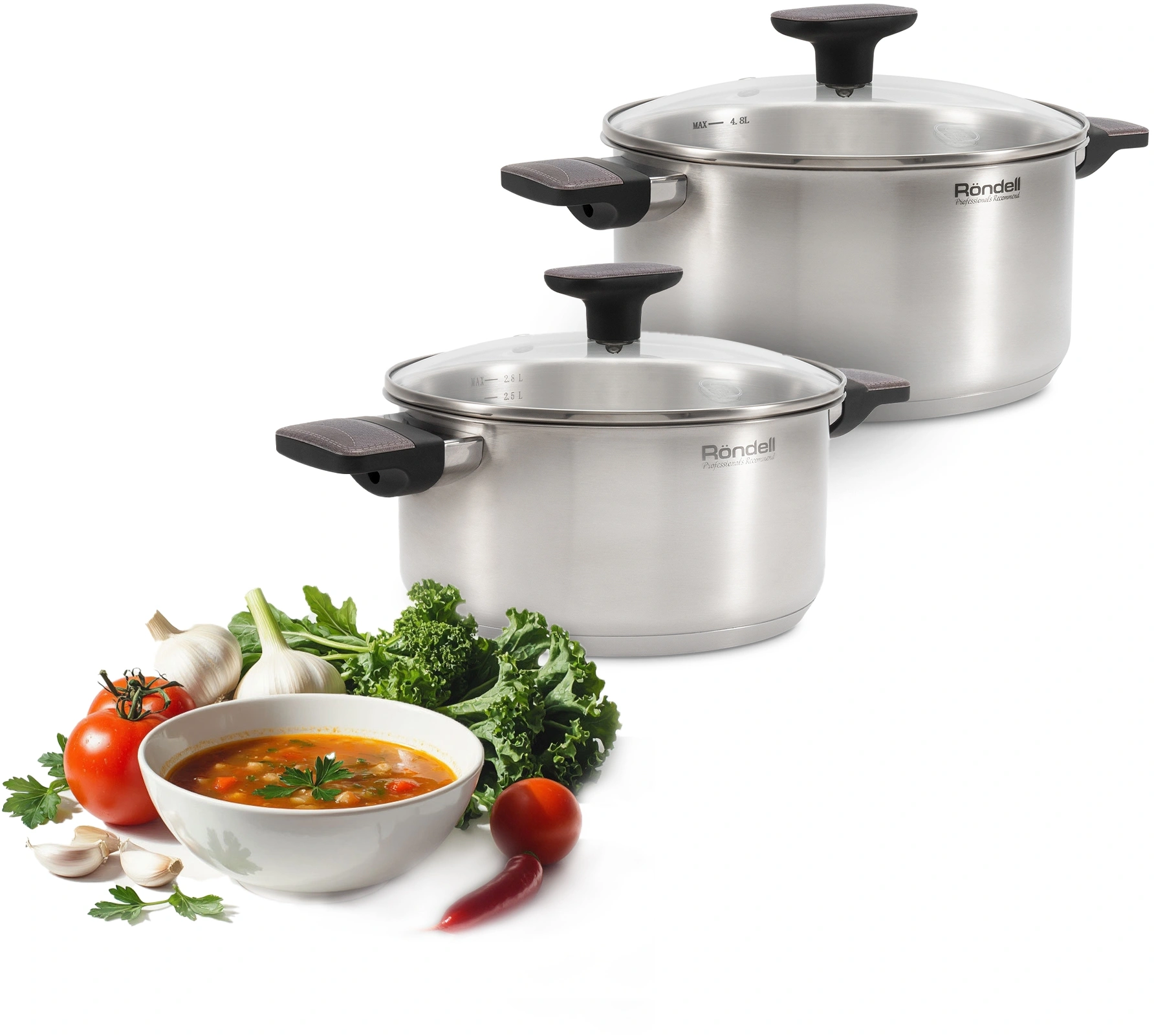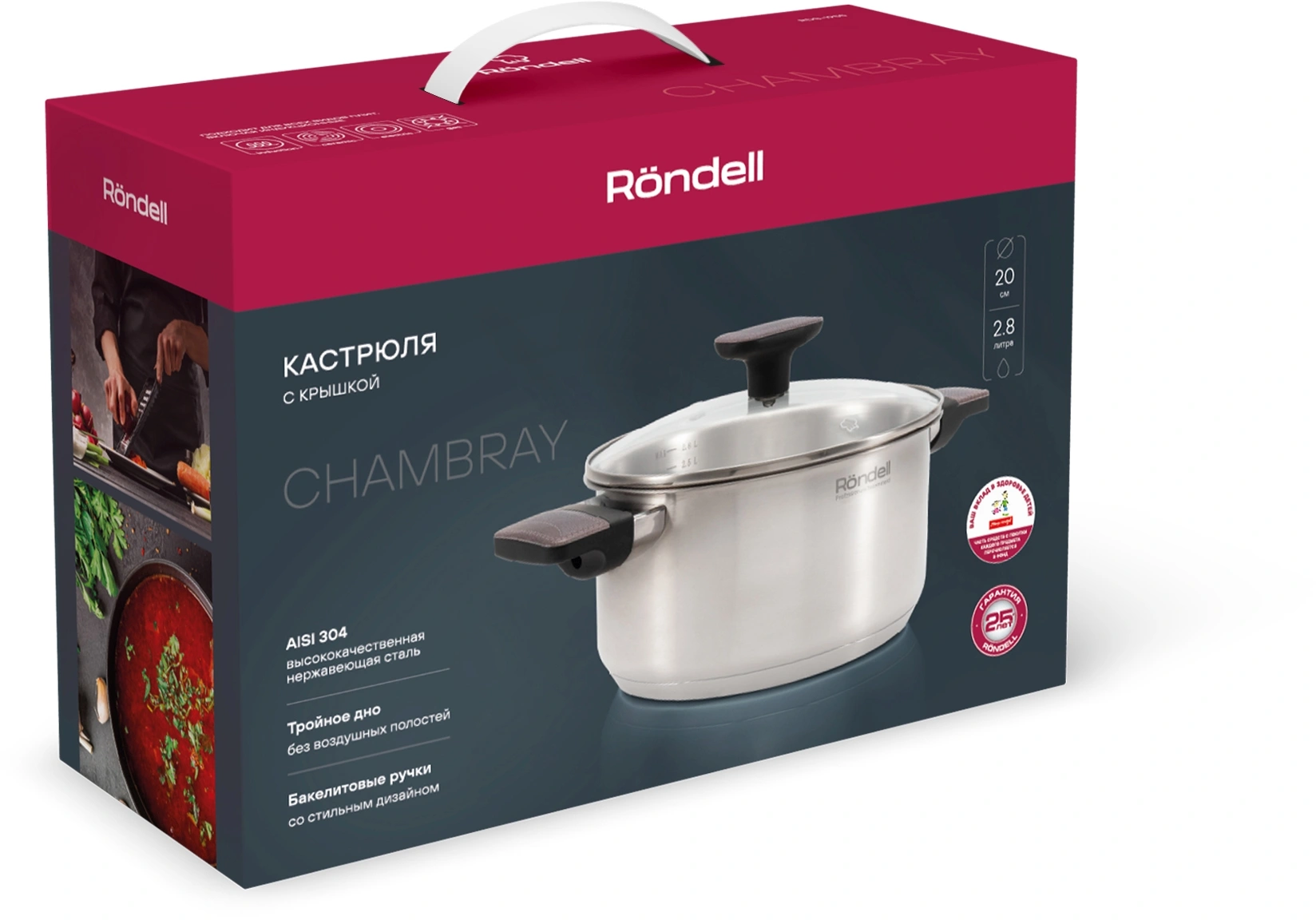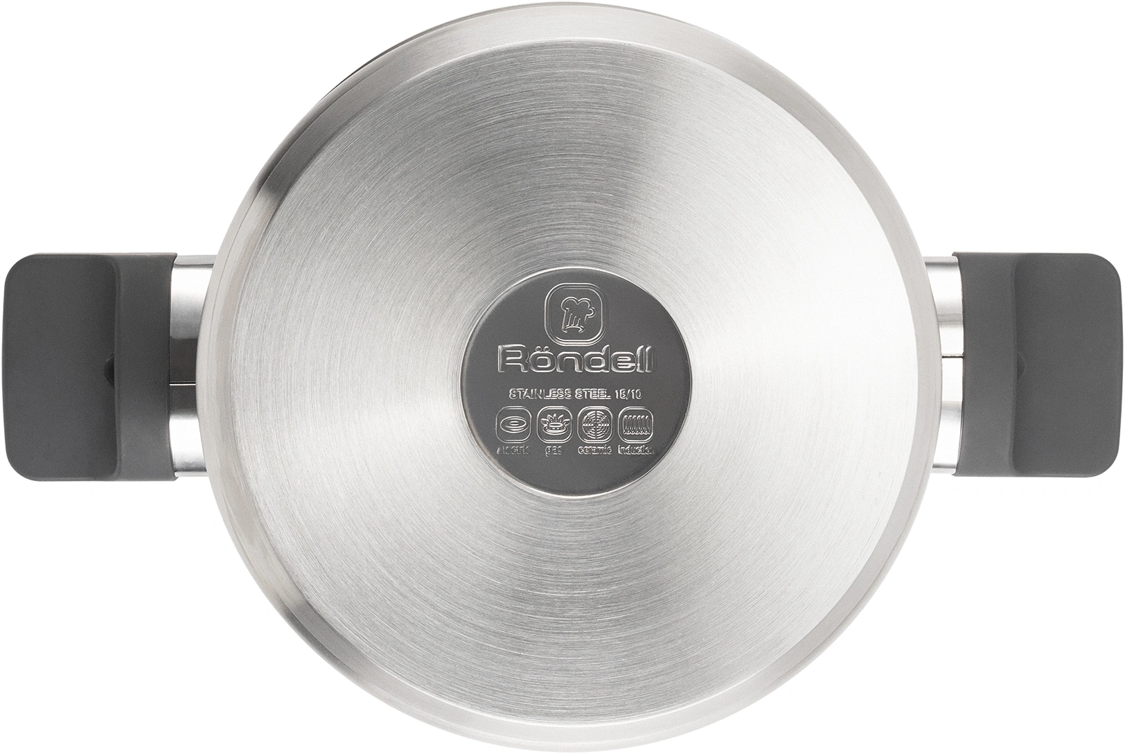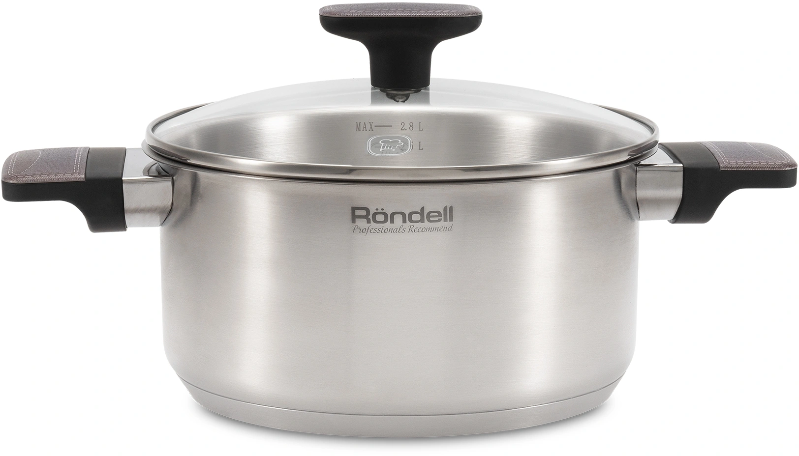 Нерж.сталь 18/10 - 0,6 мм. Технология: тройное вштампованное, а затем вплавленное дно без воздушных полостей. Аксессуары - бакелит soft touch и ABS декоративной вставкой. Прямые стенки корпуса. Крышка из термостойкого стекла с металлическим ободом.