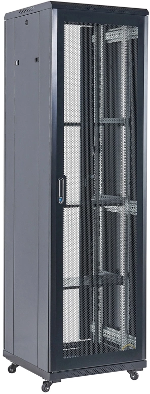 Шкаф серверный Rexant (04-4266-232) напольный 42U 600x800мм пер.дв.перфор. металл 2 бок.пан. направл.под винты 800кг черный 92кг 230град. 2054мм IP20 сталь