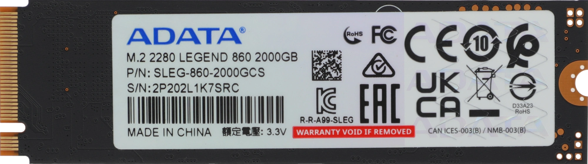 Накопитель SSD A-Data PCIe 4.0 x4 2TB SLEG-860-2000GCS Legend 860