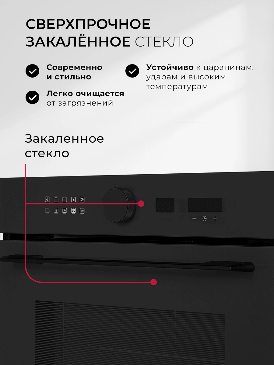 вентилятор охлаждения, дисплей, полностью стеклянная внутренняя поверхность дверцы духовки