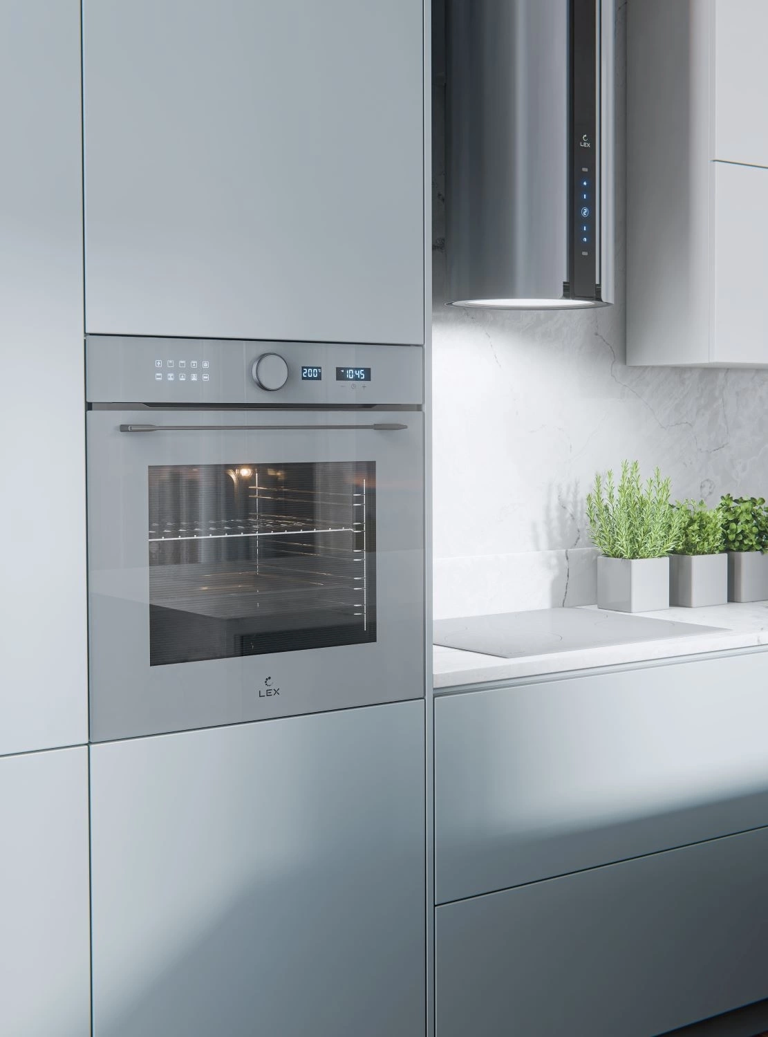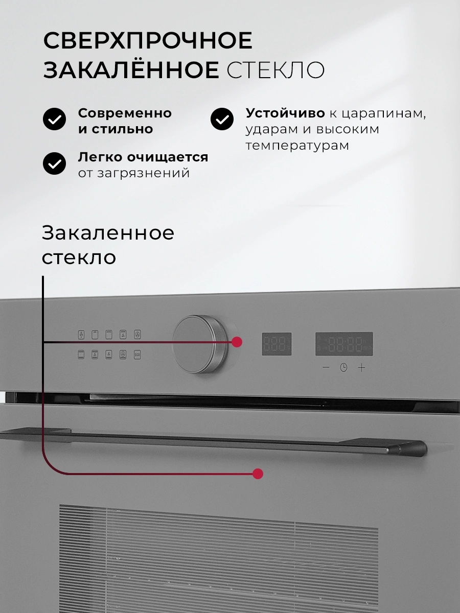 вентилятор охлаждения, дисплей, полностью стеклянная внутренняя поверхность дверцы духовки