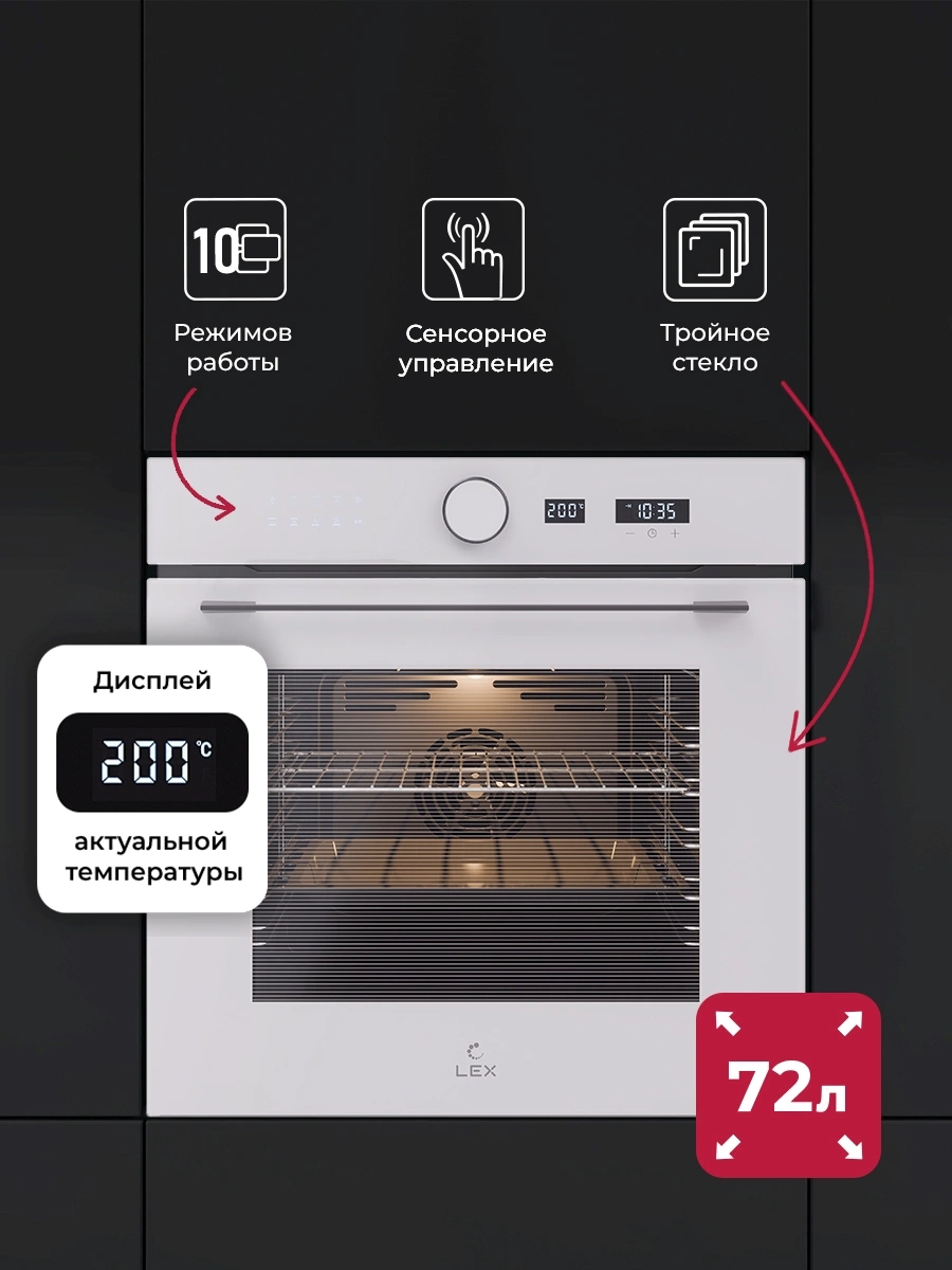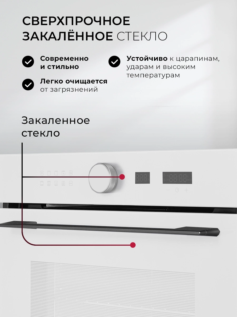 вентилятор охлаждения, дисплей, полностью стеклянная внутренняя поверхность дверцы духовки