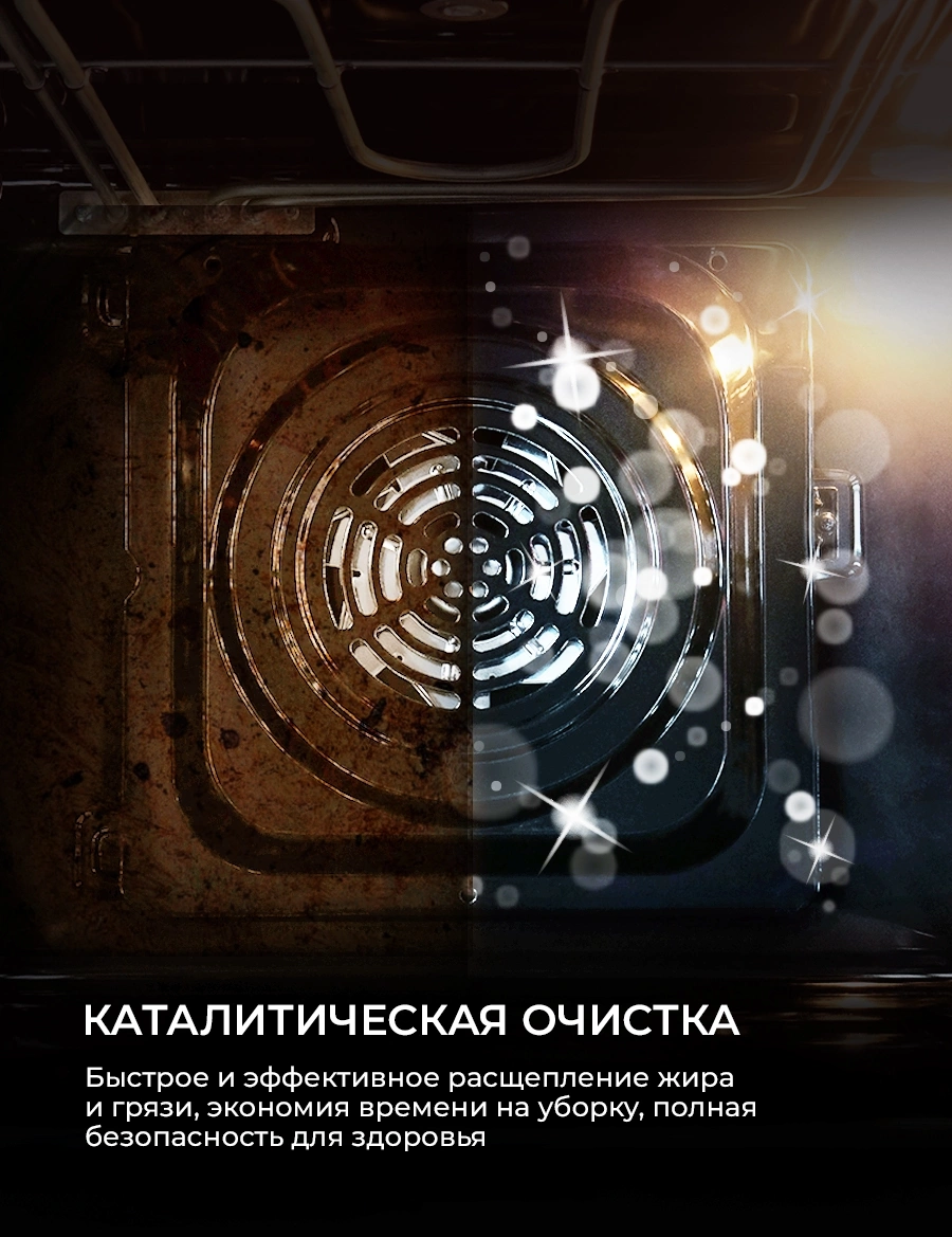 вентилятор охлаждения, дисплей, полностью стеклянная внутренняя поверхность дверцы духовки, телескопические направляющие