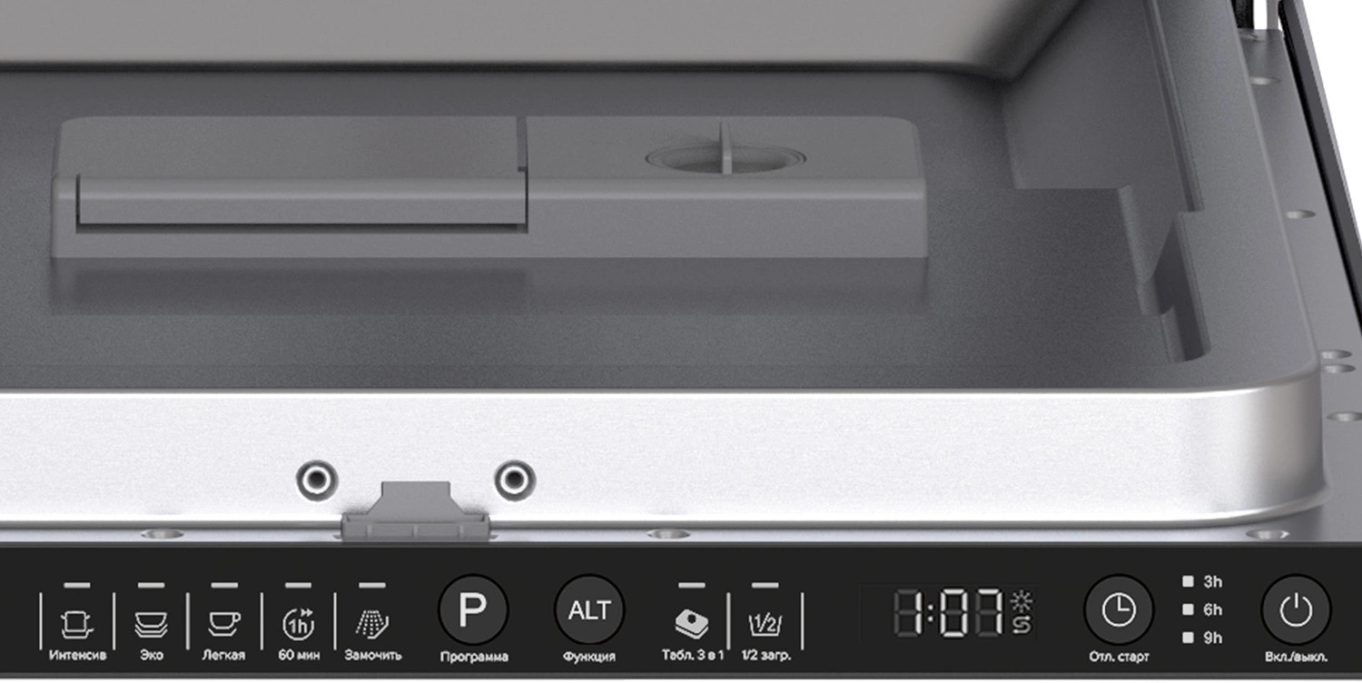 звуковой сигнал, наличия ополаскивателя, наличия соли