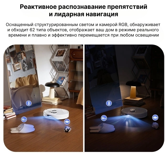 автоматическая работа, автоматический поиск зарядного устройства, построение карты помещения, уборка по расписанию, управление со смартфона