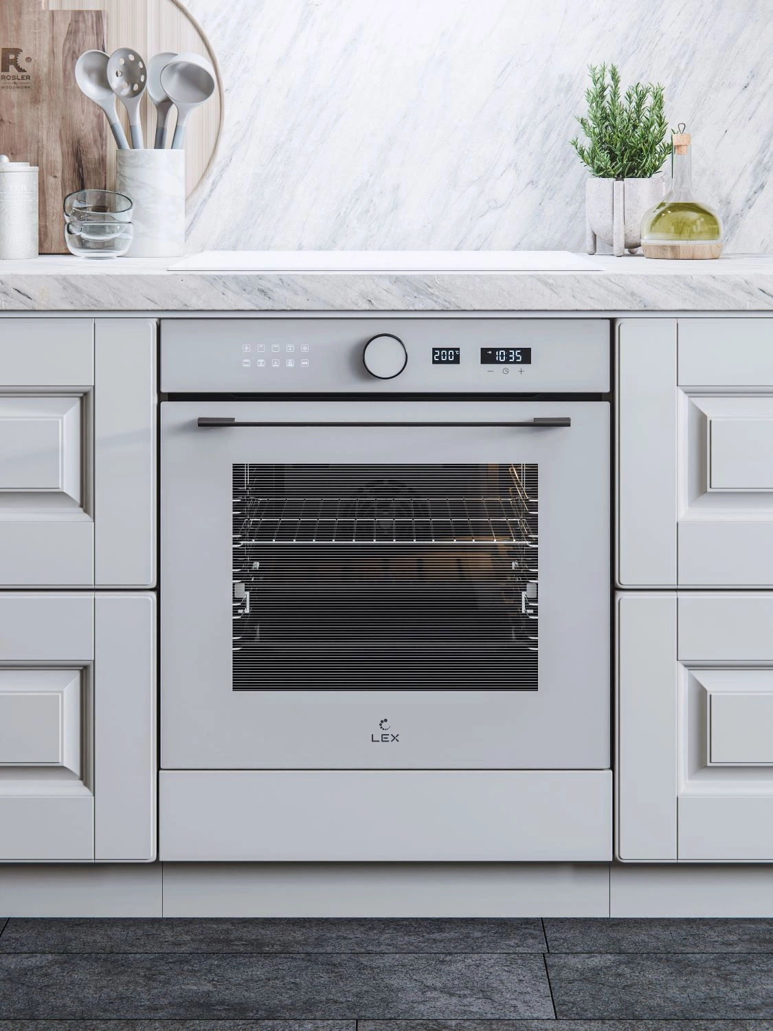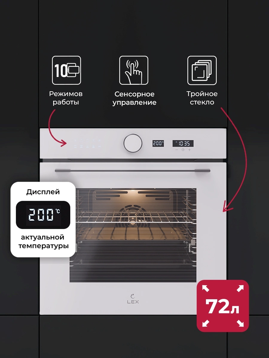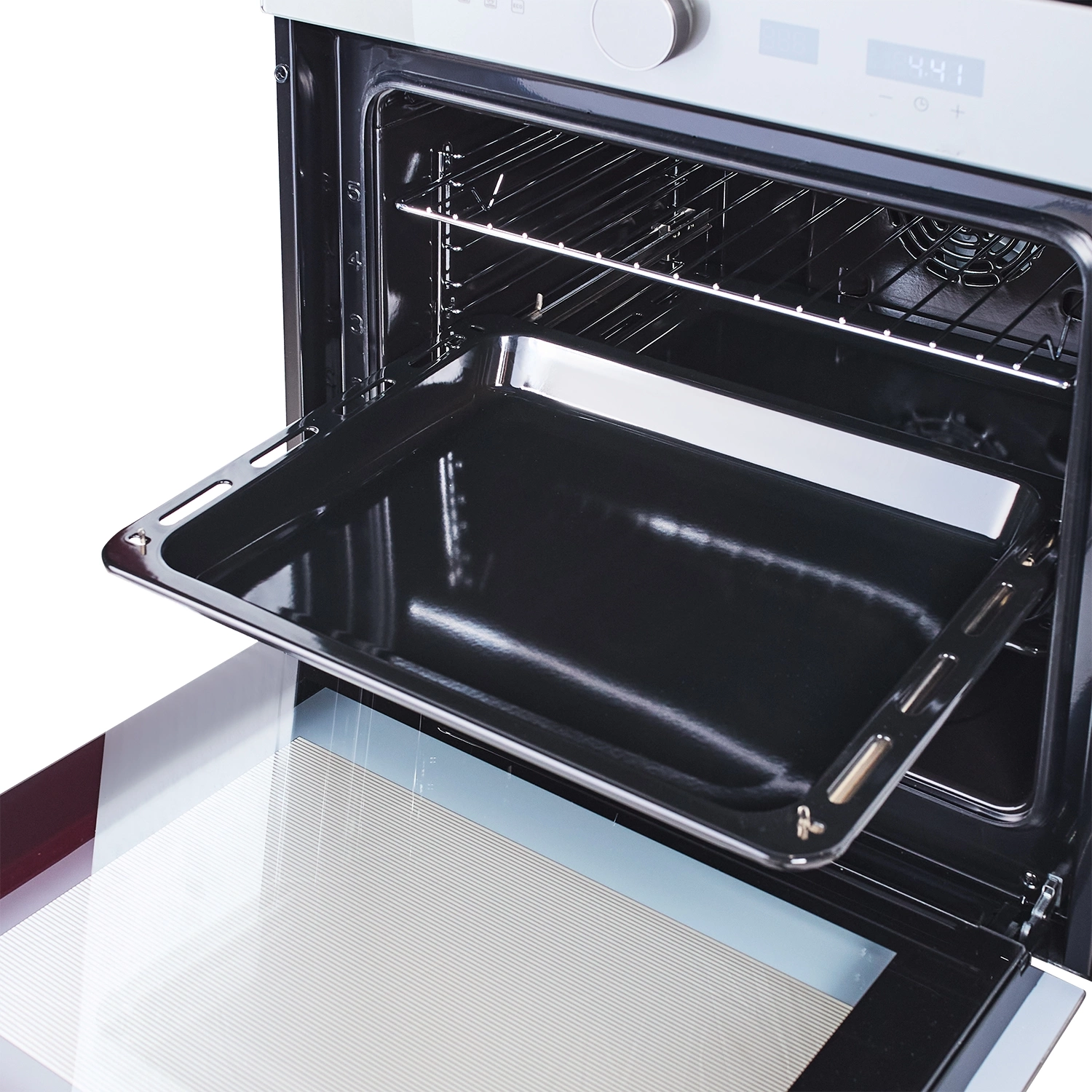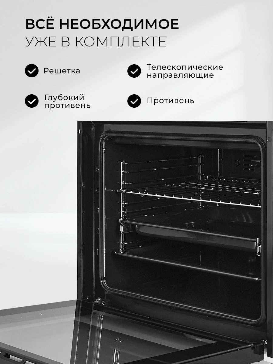 вентилятор охлаждения, дисплей, полностью стеклянная внутренняя поверхность дверцы духовки, телескопические направляющие