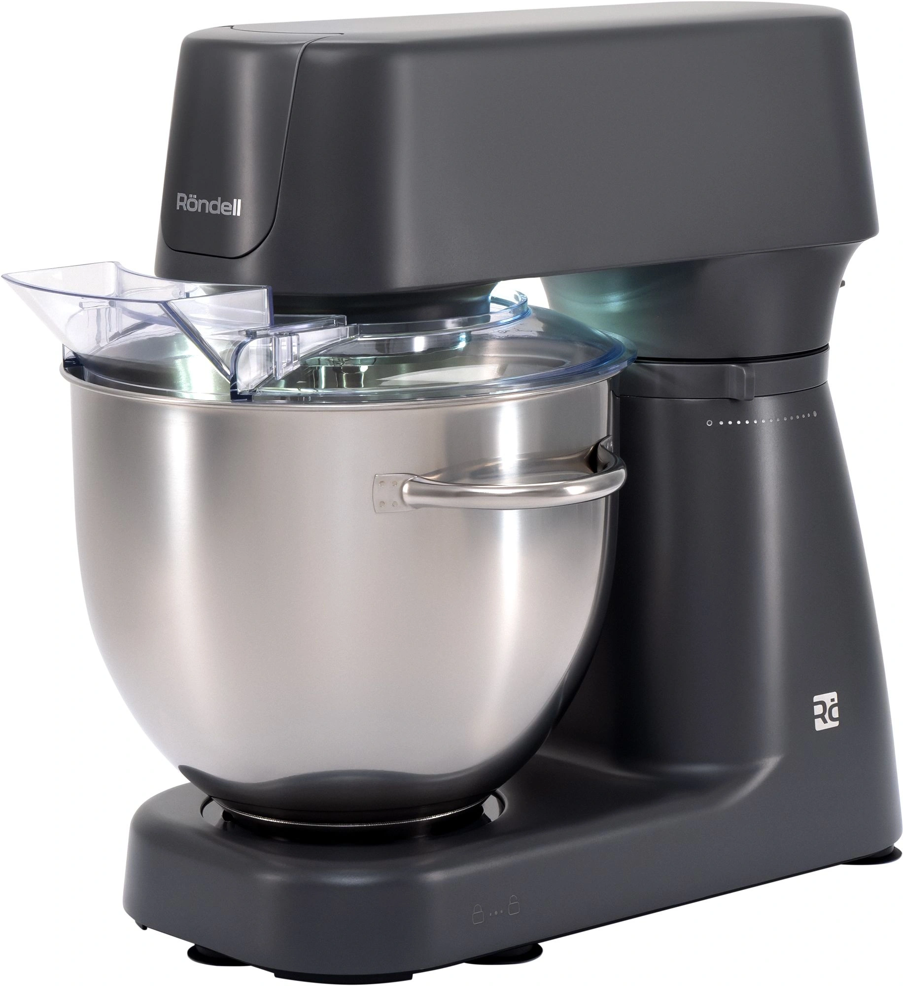 встроенная подсветка чаши, двигатель с медной обмоткой, насадки можно мыть в посудомоечной машине, прорезиненные ножки, цельнометаллические насадки, цельнометаллические шестерни