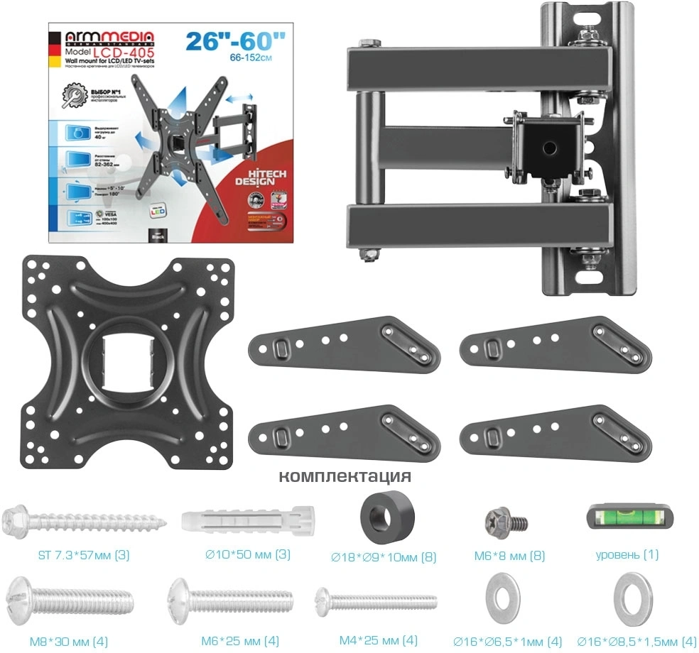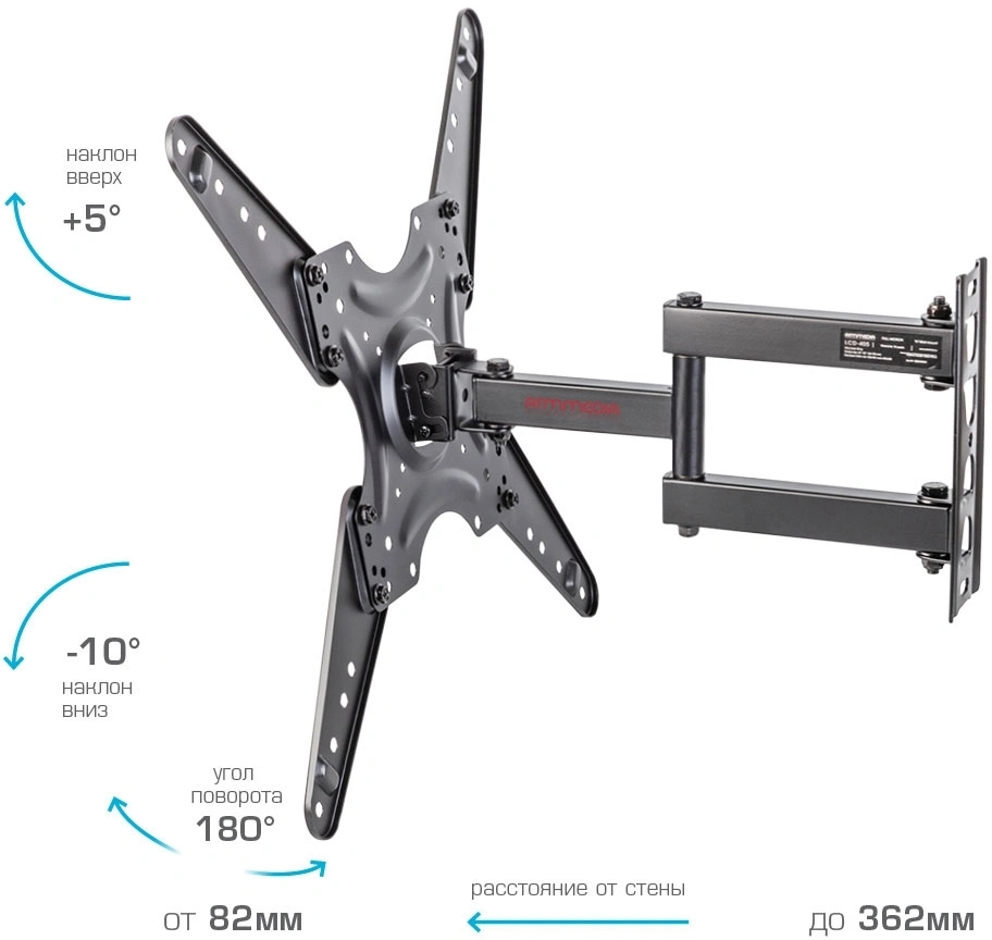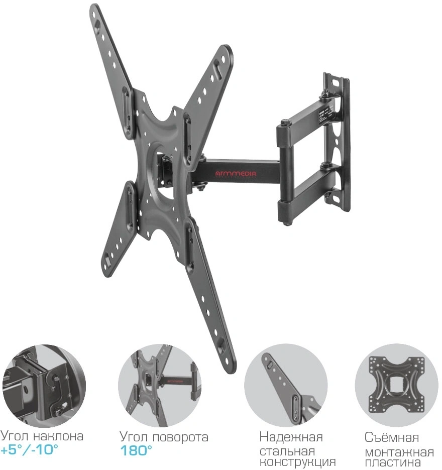 черный 26"-60" макс.40кг настенный поворотно-выдви...