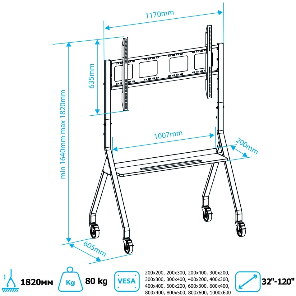 серебристый 32"-120" макс.80кг напольный