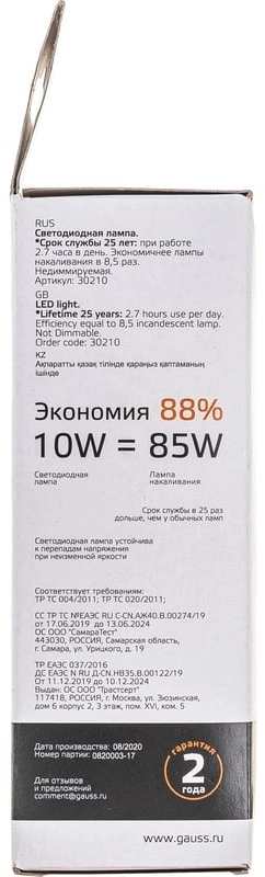 10Вт цок.:E27 свеча 220B св.свеч.бел.теп. (упак.:...