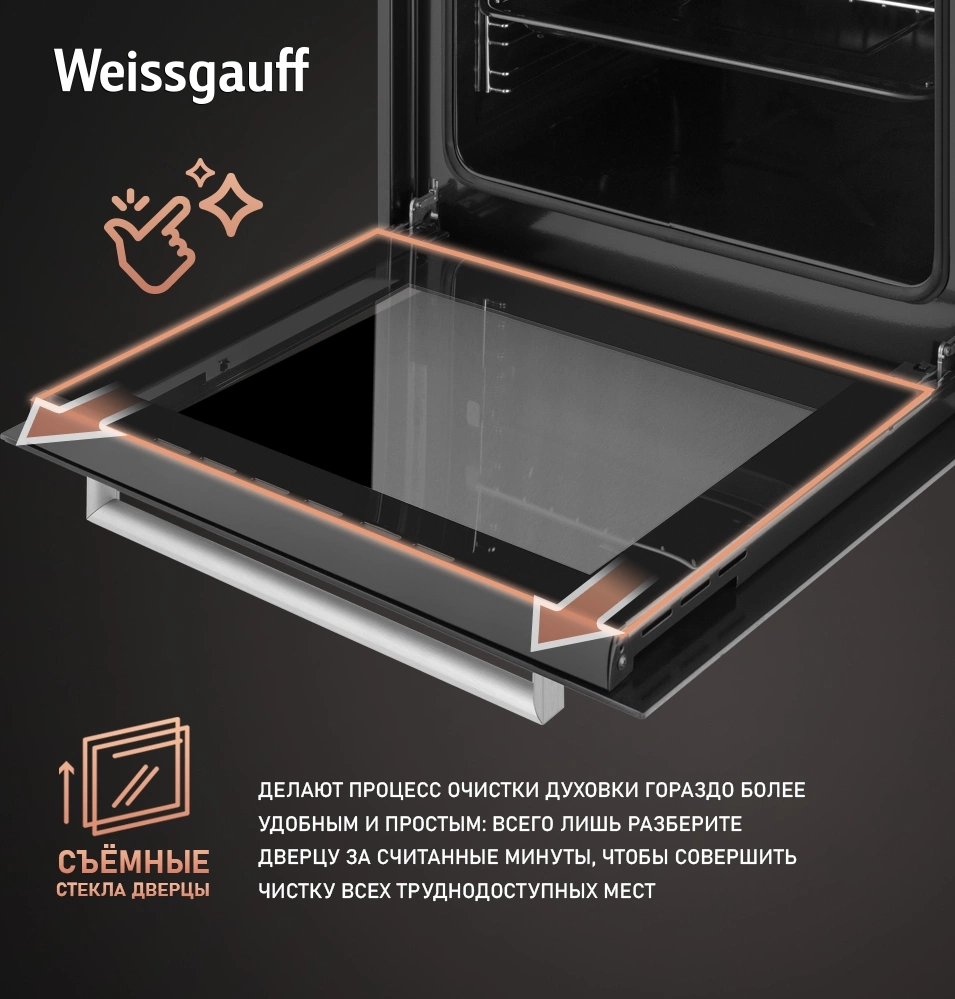 дисплей, полностью стеклянная внутренняя поверхность дверцы духовки, утапливаемые переключатели