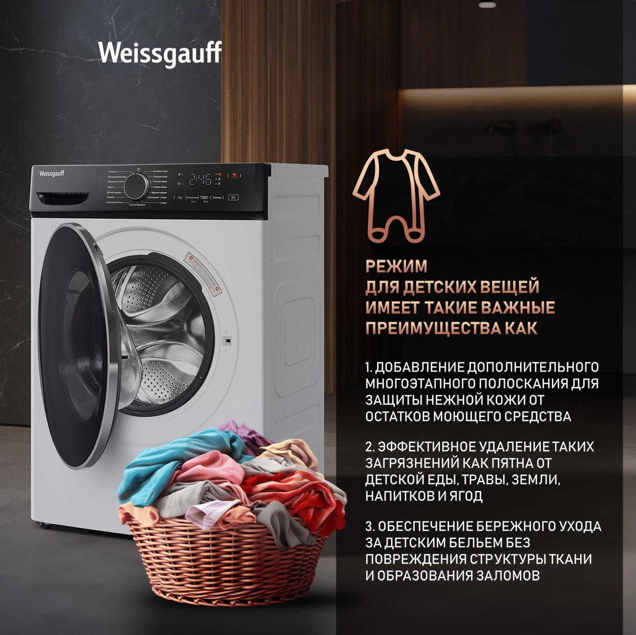 быстрая стирка, деликатная стирка, самоочистка