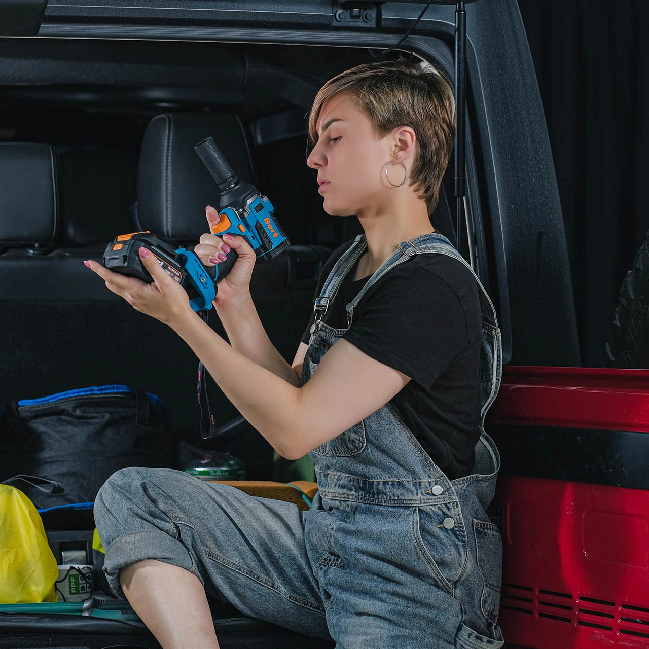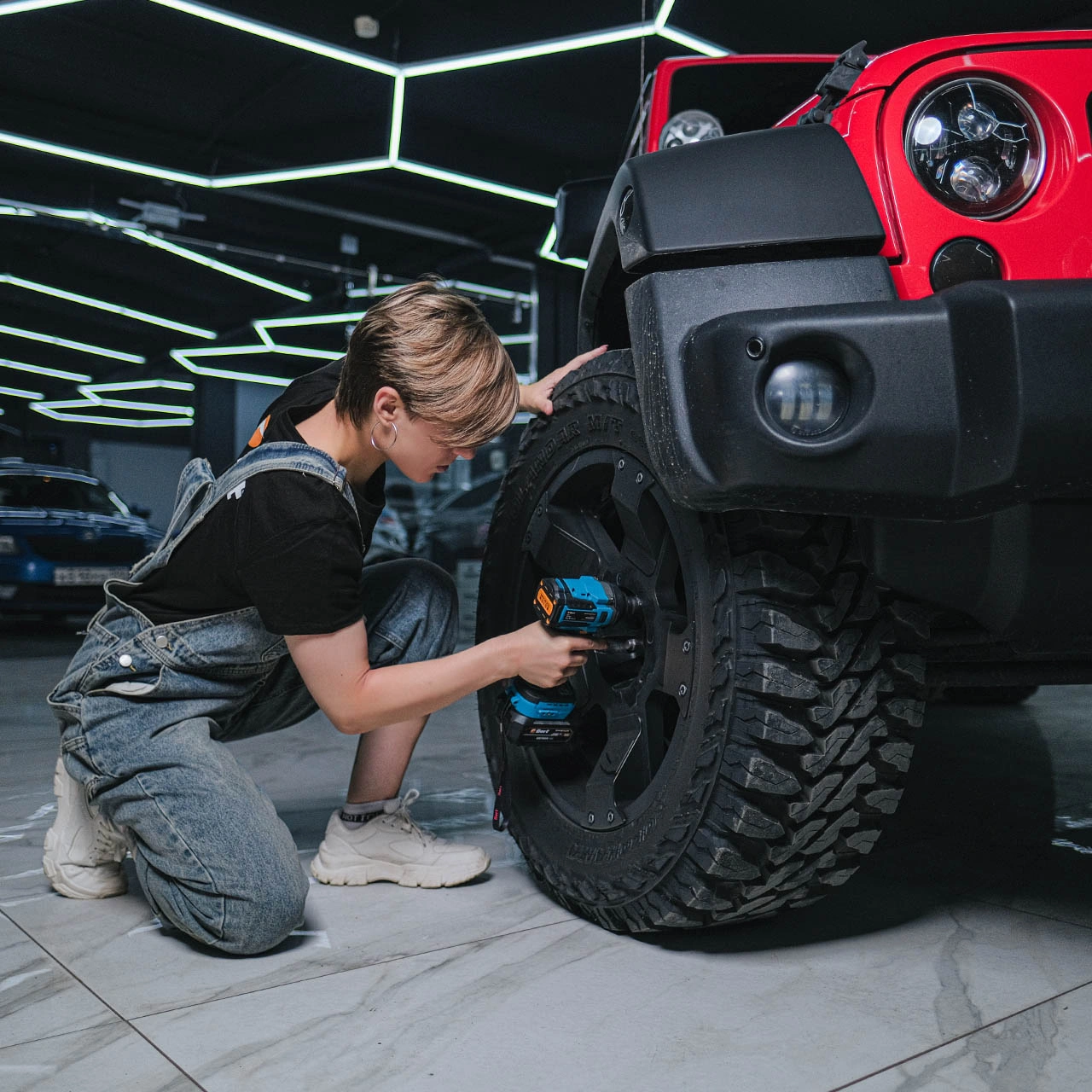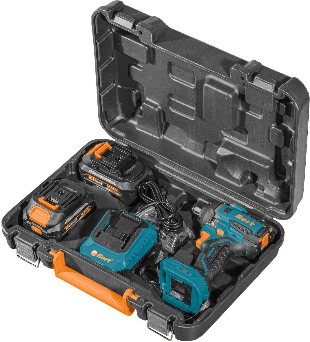Гайковерт, зарядное устройство, дополнительная аккумуляторная батарея, кейс, головка 17 мм., скоба-фиксатор.