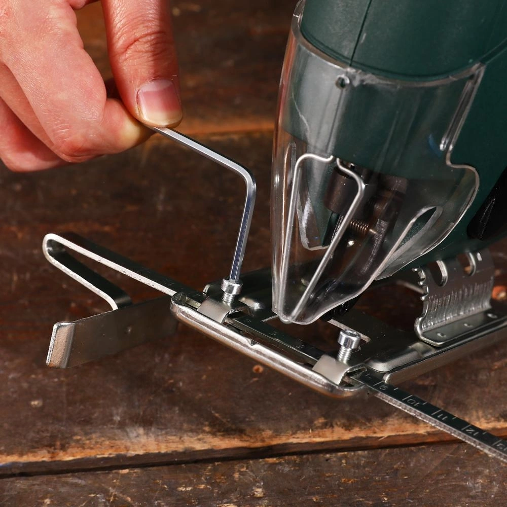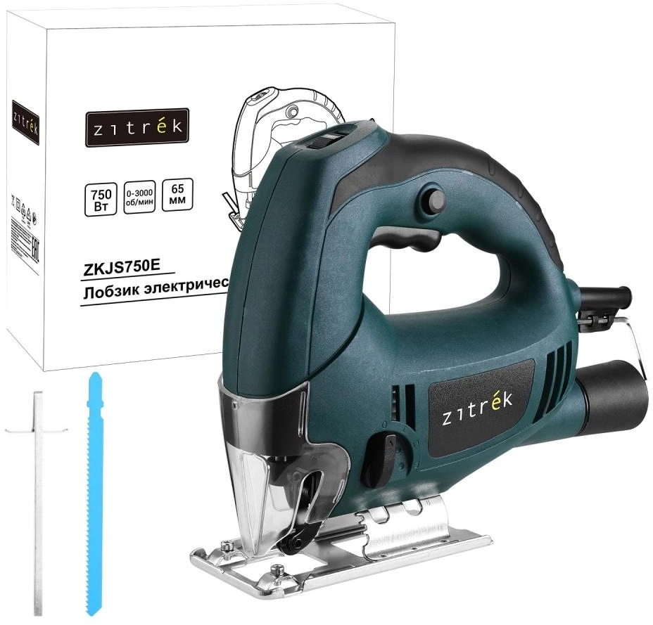 Лобзик, пильное лезвие, параллельный упор, шестигранный ключ, пылеотводный патрубок, угольные щетки - 2 шт., руководство по эксплуатации.