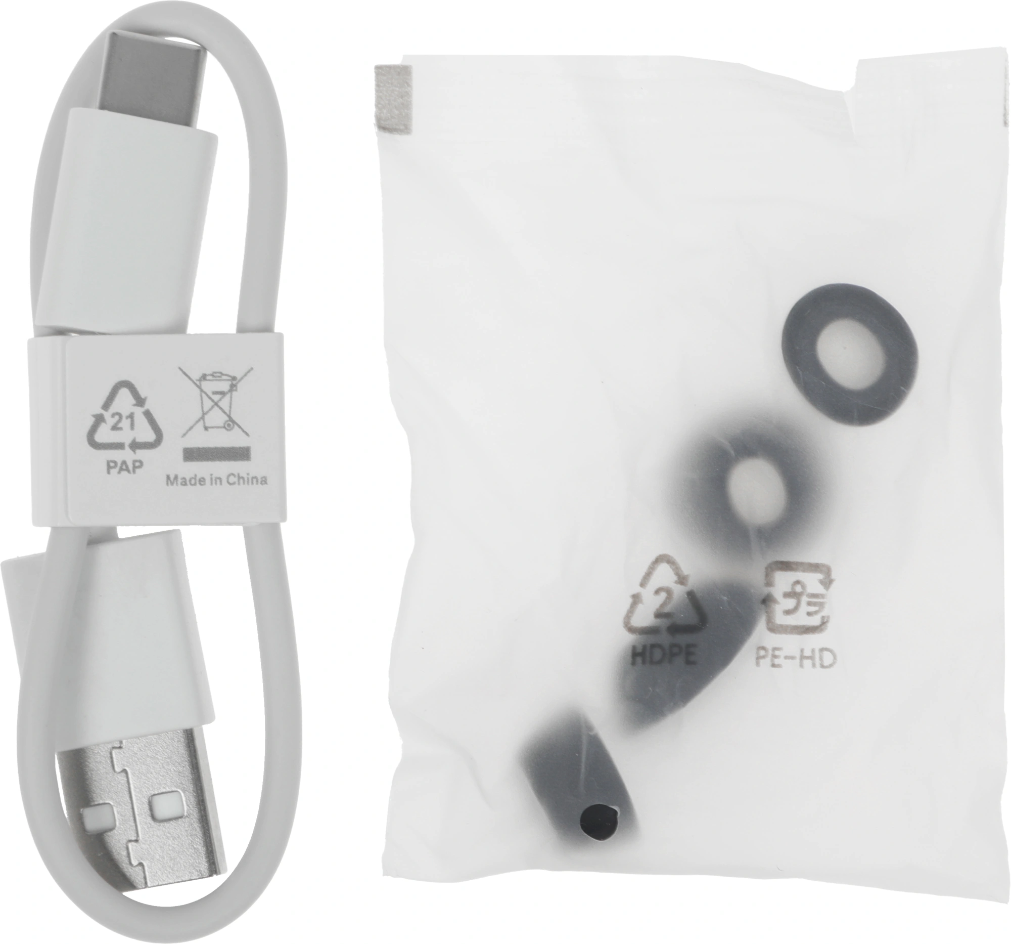 Беспроводные наушники, техническая документация, зарядный кабель Type-C, сменные резиновые накладки (3 пары) (размер М предустановлен)