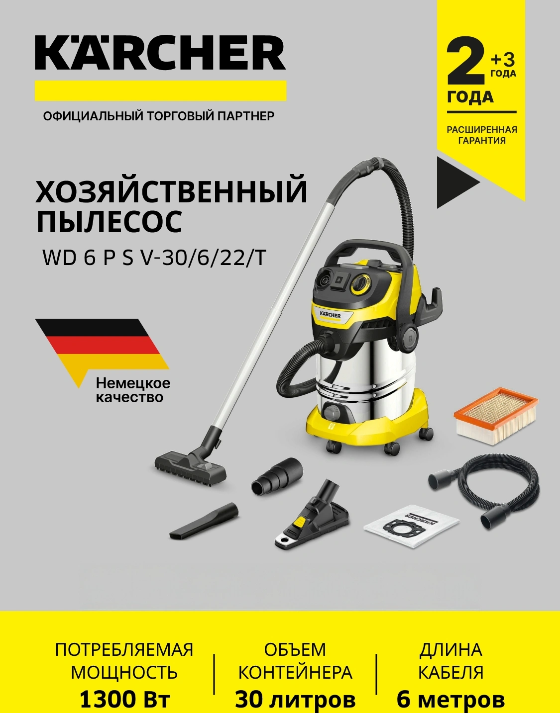 Строительный пылесос Karcher WD 6 P S V-30/6/22/T + DDC (YSY)