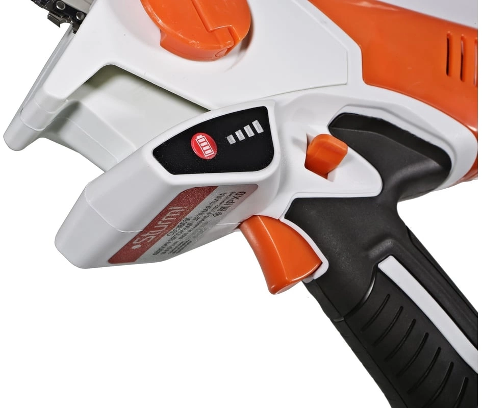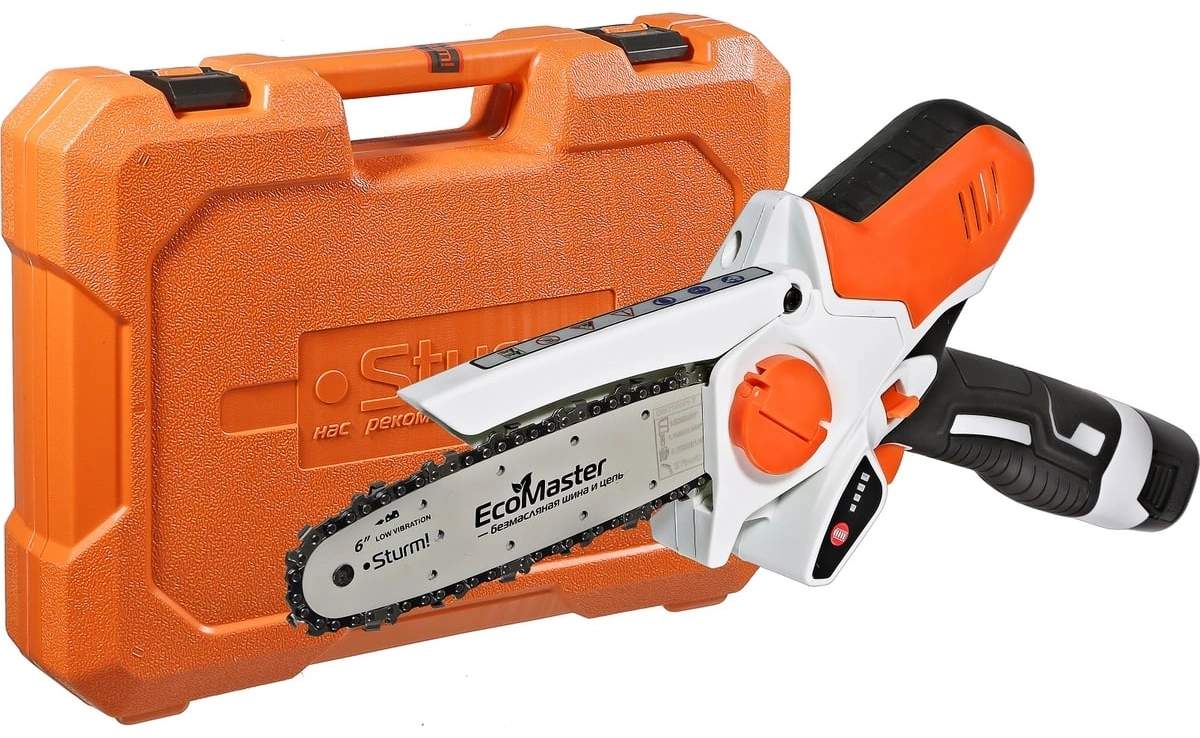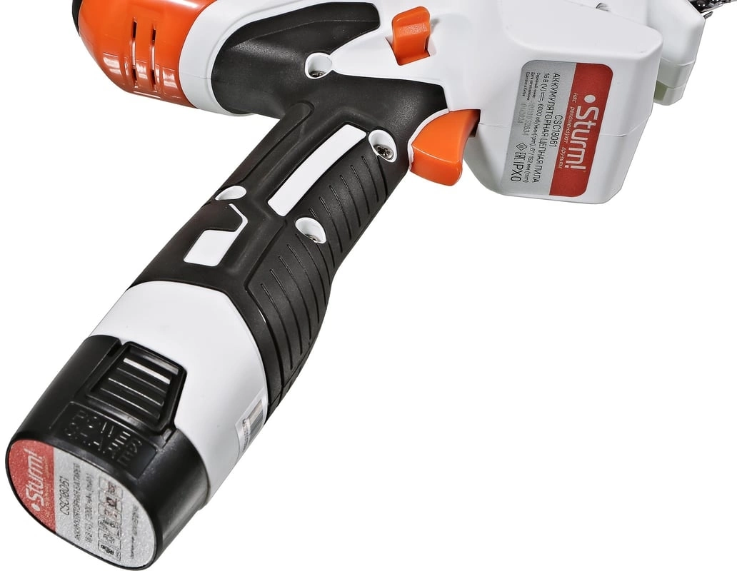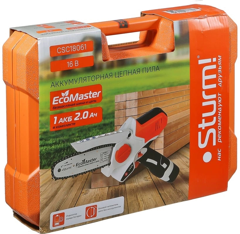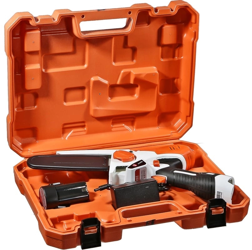 Пила цепная, пильная шина, пластиковый защитный кожух шины, пильная цепь, аккумуляторная батарея (1 шт), бутылка для масла, зарядное устройство, инструкция по эксплуатации, инструкция по безопасности