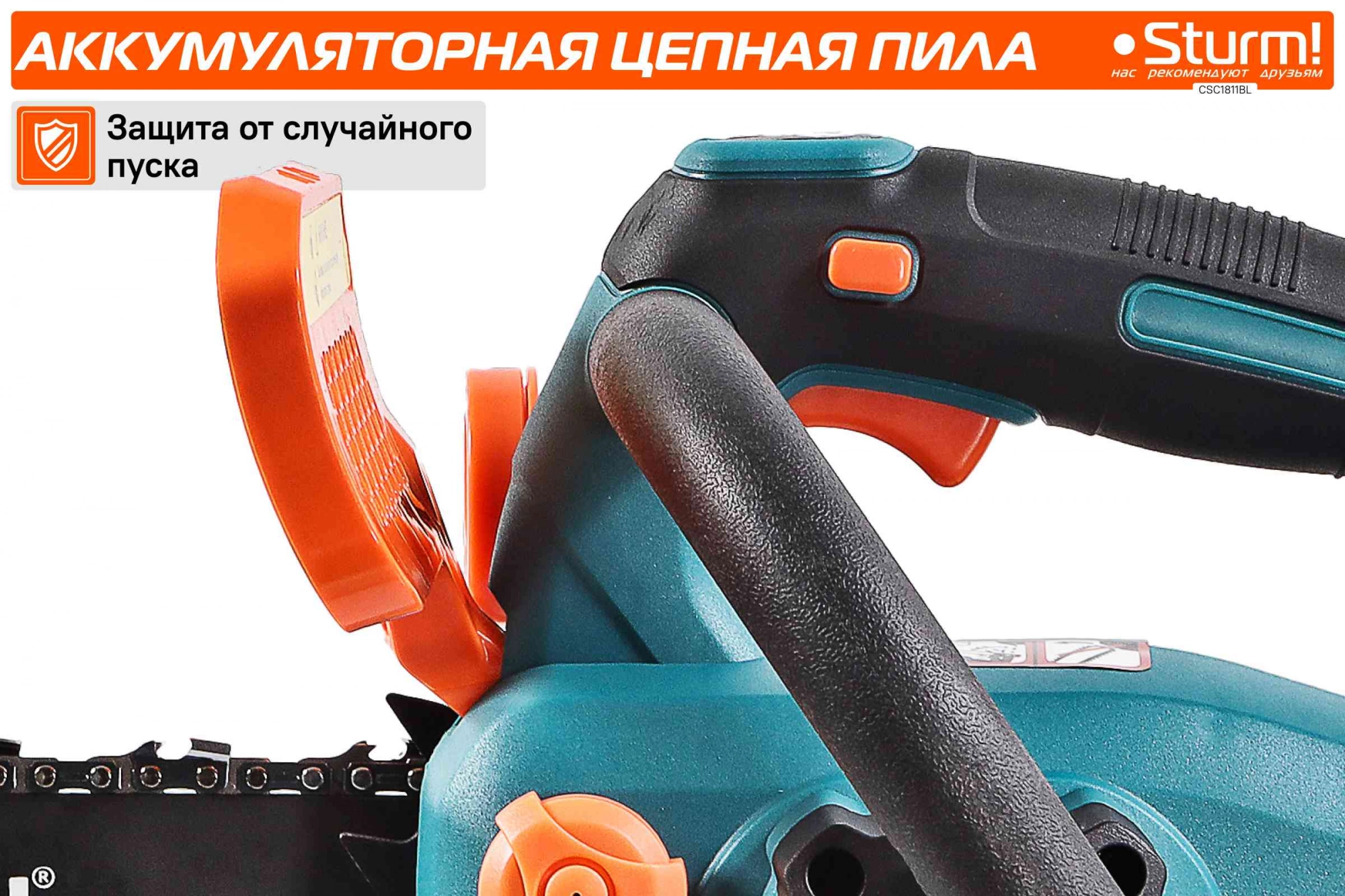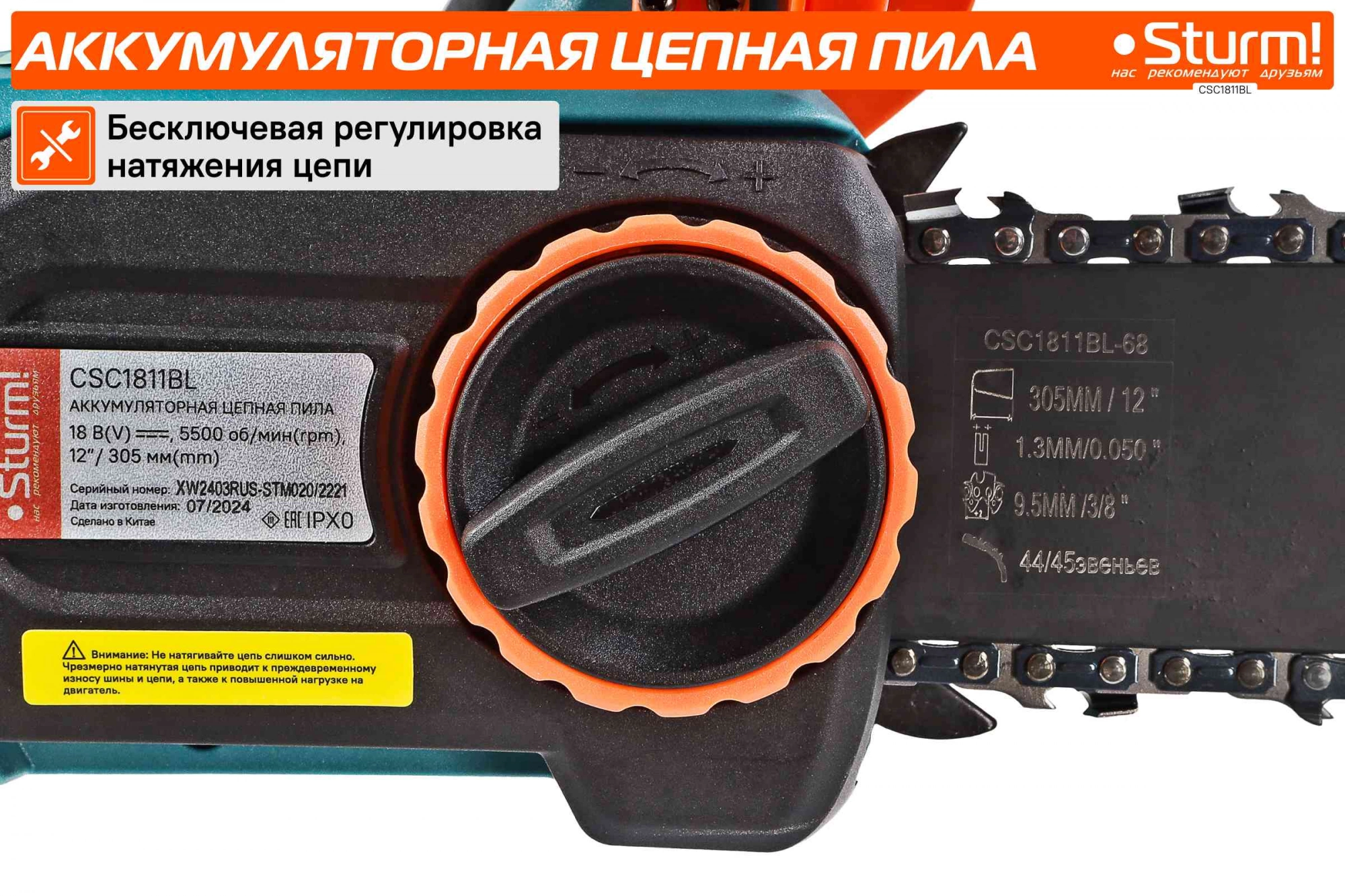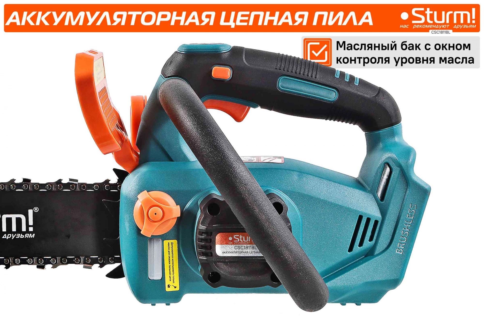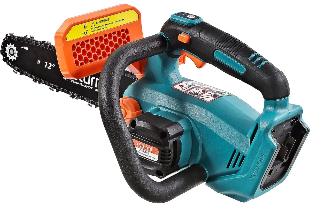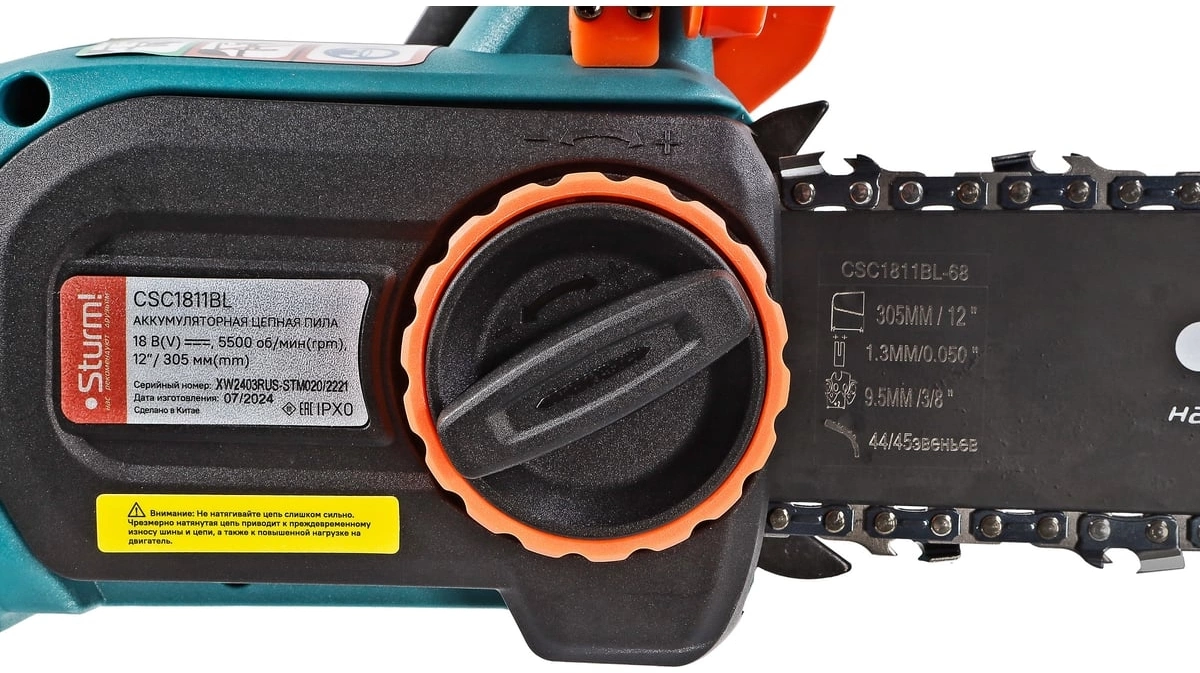автоматическая смазка цепи, натяжение и замена цепи без использования инструментов, плавный пуск, тормоз цепи