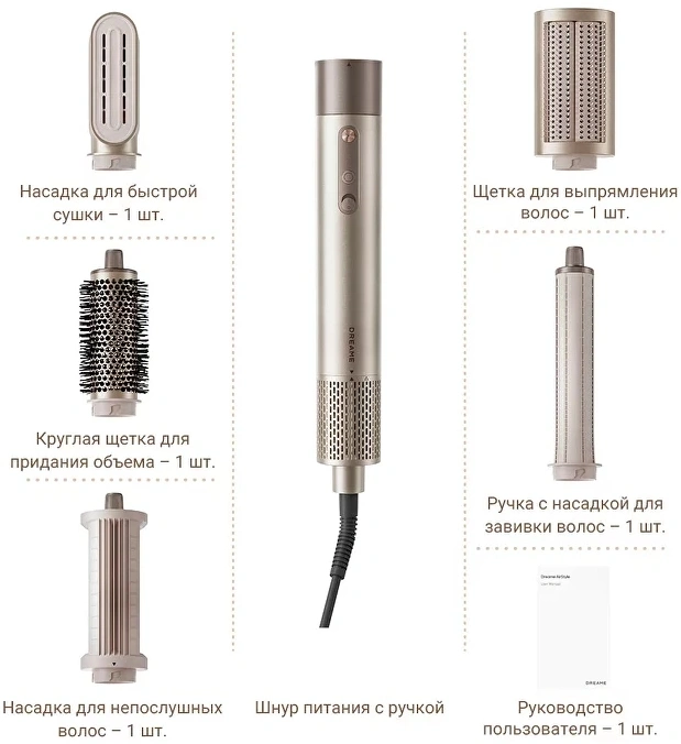Насадка для сушки, насадка для разглаживания, цилиндрическая насадка для создания локонов, щетка для выпрямления, круглая щетка для создания объема